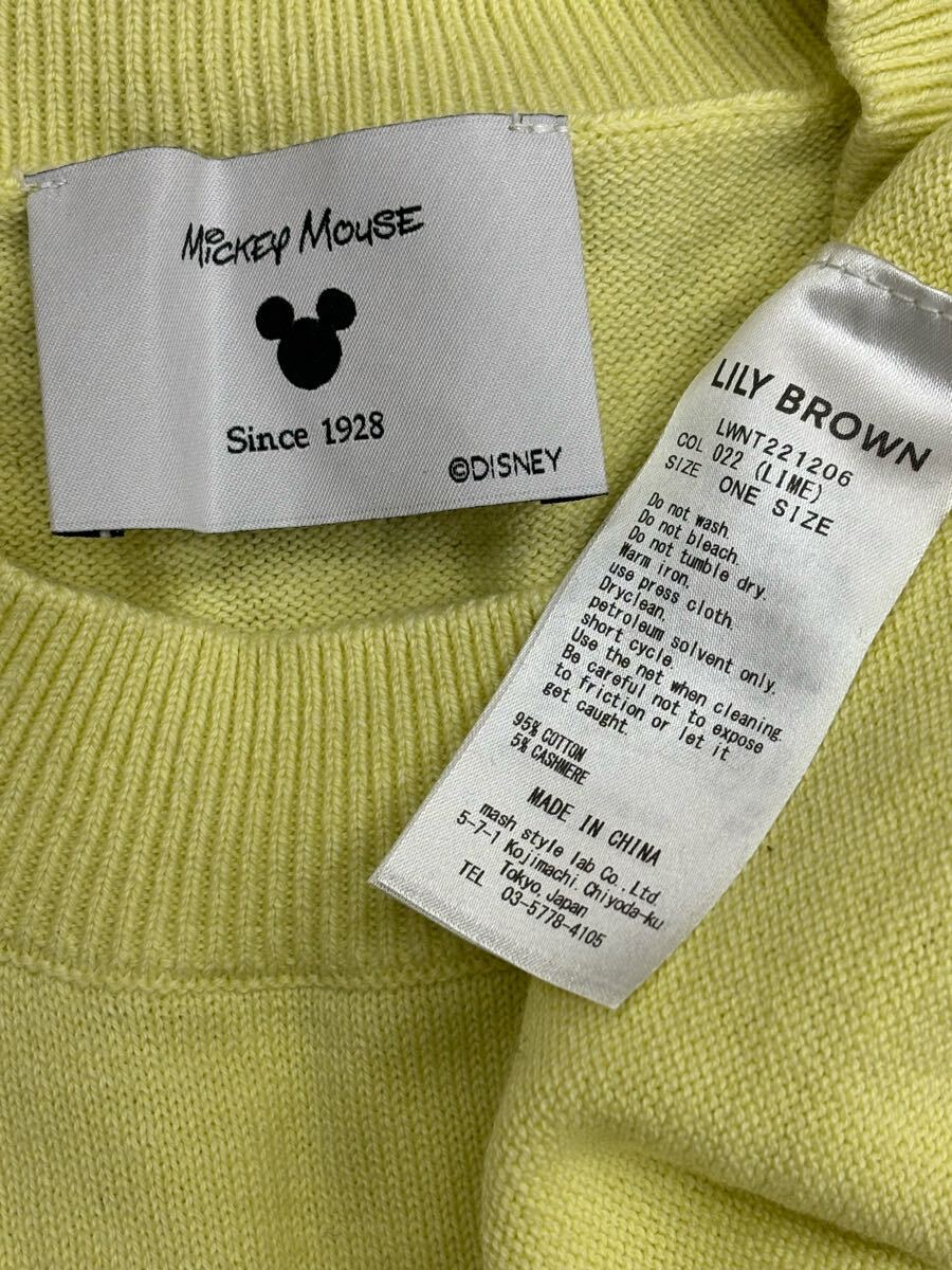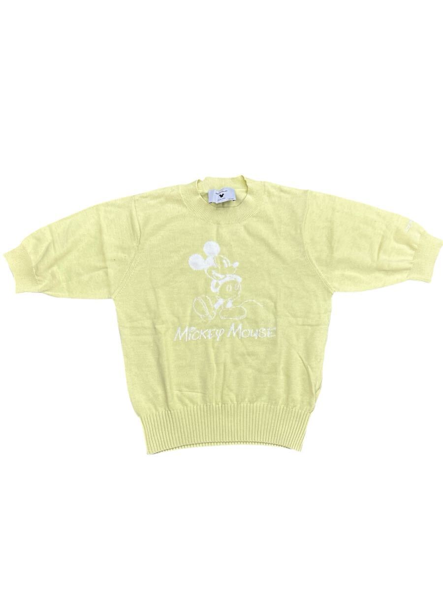 このセーターは、明るい黄色の色合いとミッキーマウスのプリントが特徴で、カジュアルなスタイルにぴったりです。
