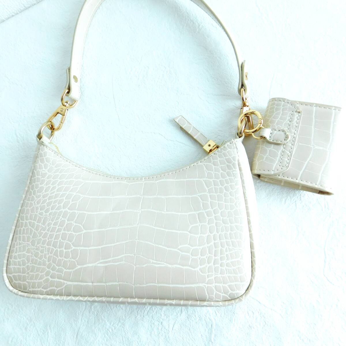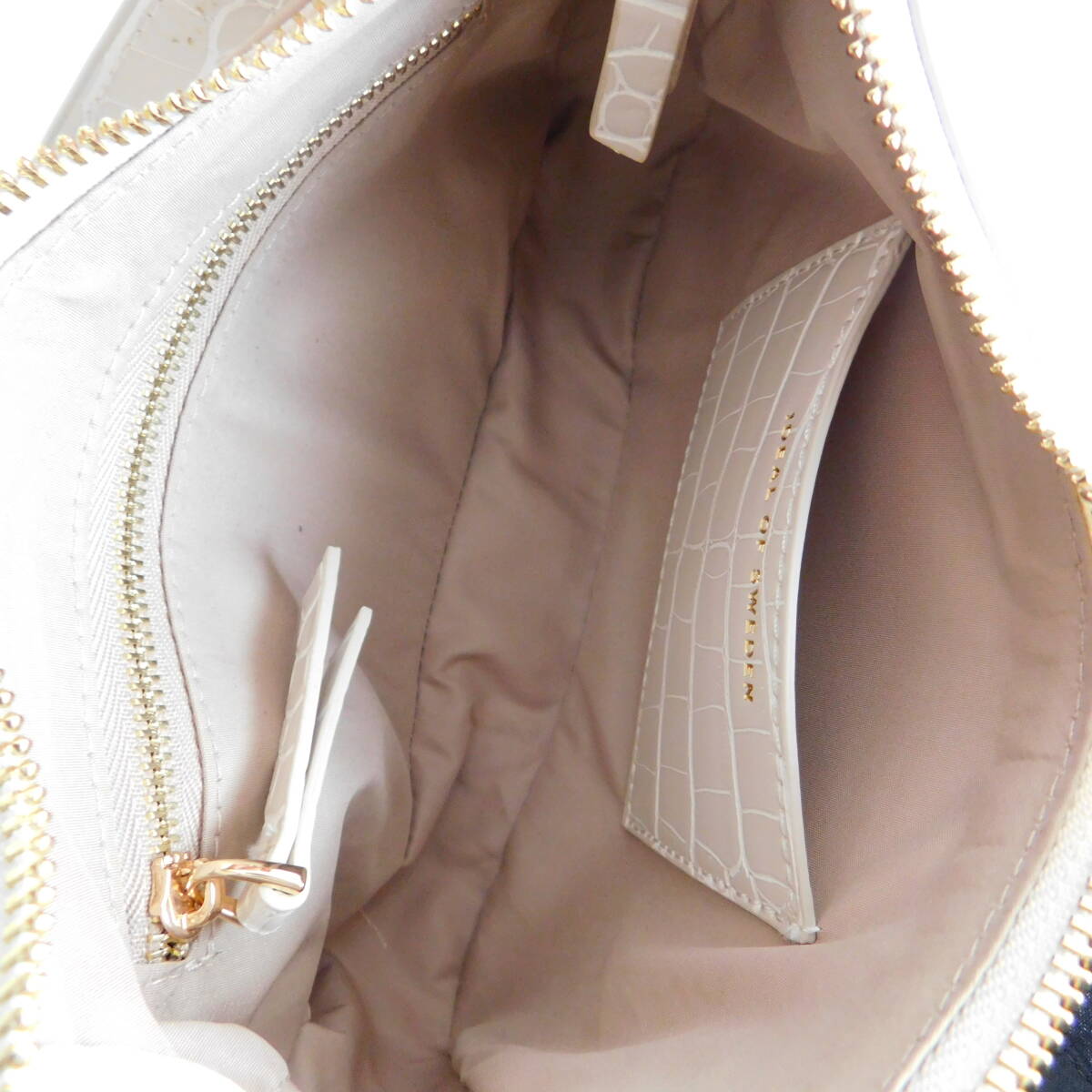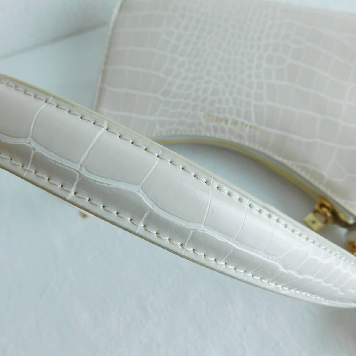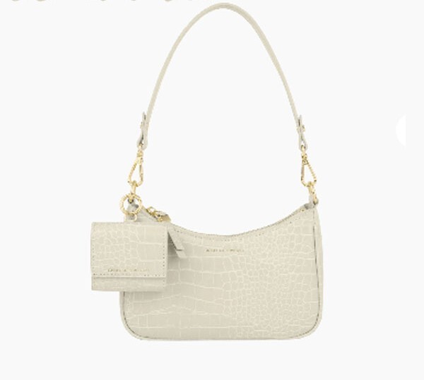 【Nora ショルダー バッグは、威信と洗練を放ちます。クロコのテクスチャーの非常に魅力的な魅力を讃える、クリーム ベージュの遊び心のあるデュアルトーン デザイン。