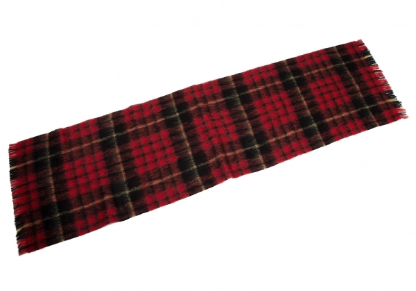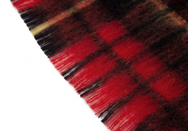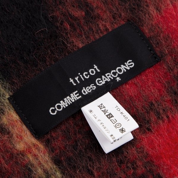 | トリココムデギャルソンtricot COMME des GARCONS モヘヤウールタータンチェックマフラー 赤黒 |