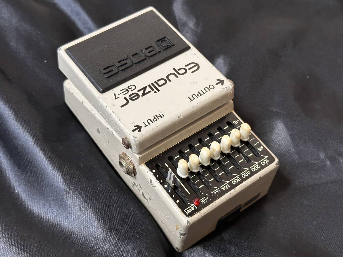 数ある商品の中から当方の商品を閲覧頂き誠にありがとうございます。 【商品詳細】 BOSS/GE-7 Equalizer ACA-100仕様 MADE IN JAPAN 【商品状態】 ・使用していたため細かな傷があります。傷などの外観の状態については画像よりご確認ください。 ・アダプター、9V電池にて動作確認済み。 ・各コントロール、スイッチもガリノイズ等無いことを確認しております。 ・levelつまみ欠品しています。 【付属品】 ・無し | ||