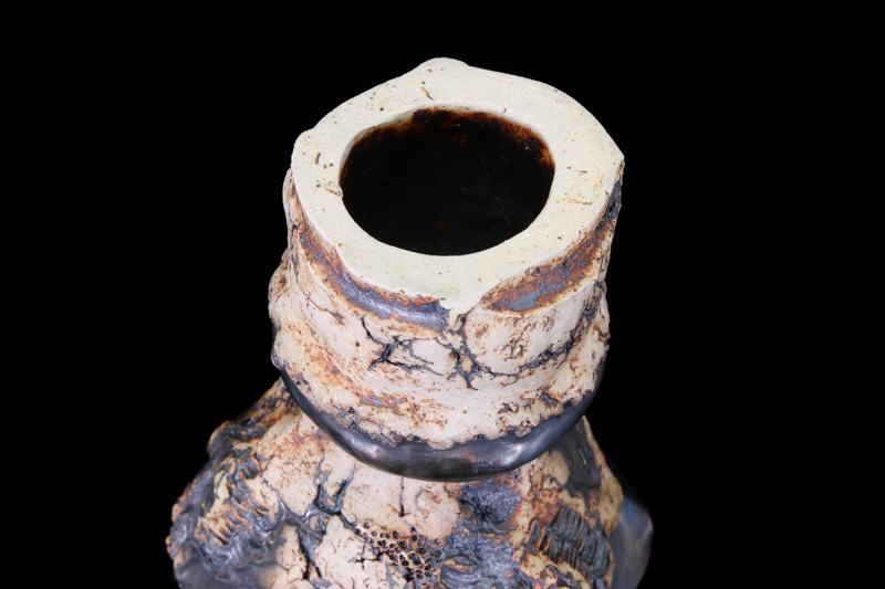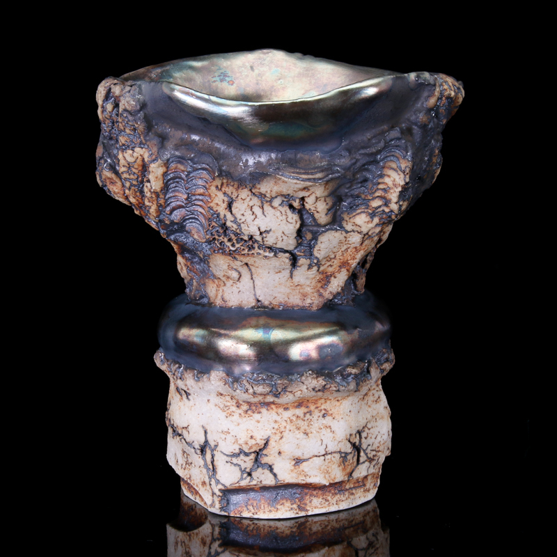 大学在学時の授業で陶芸に初めて触れたことが作陶の道を歩みを始めるきっかけ。陶芸活動の初期から突き抜けた作品を制作したいという想いがあり、その意思は作品に遺憾なく体現されています。遥か太古を臨むイメージは、手に取るひとの心を揺さぶることでしょう。