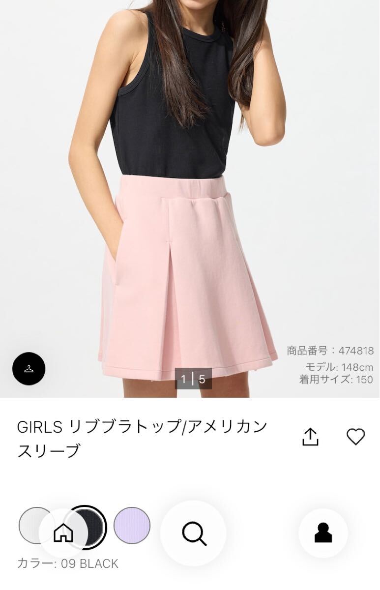 ユニクロGIRLS リブブラタンクトップ アメリカンスリーブ サイズ150 ブラック