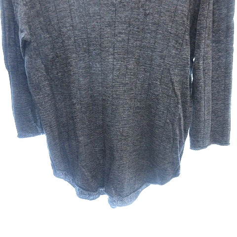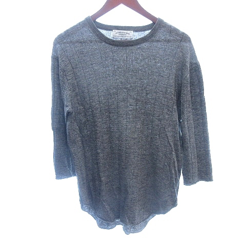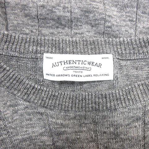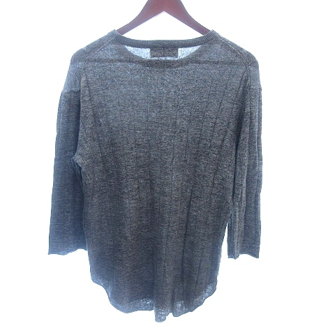 グリーンレーベルリラクシング ユナイテッドアローズ green label relaxing ニット カットソー ラウンドカラー 麻 七分袖 S グレー