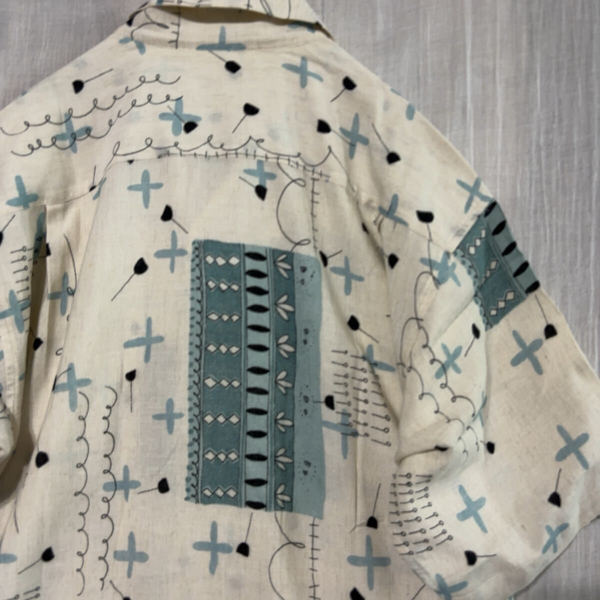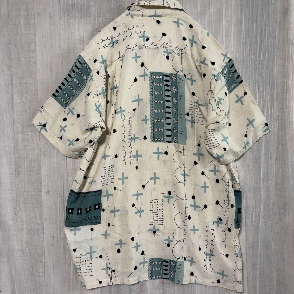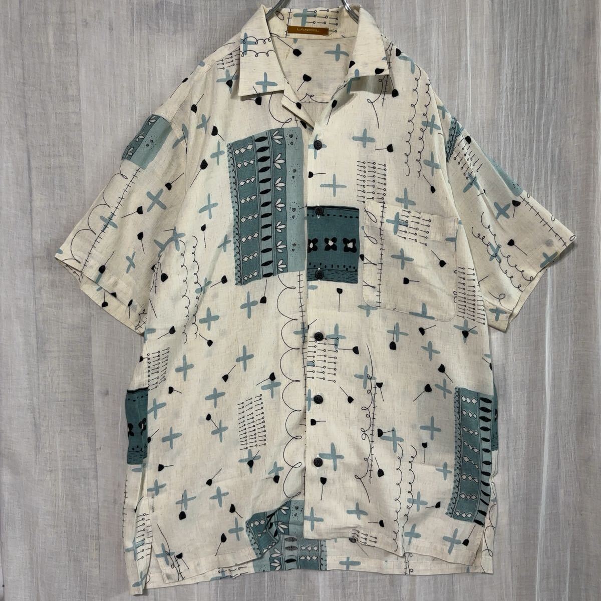 リネンシャツ レーヨンシャツ メンズ 柄物 総柄 ヴィンテージ