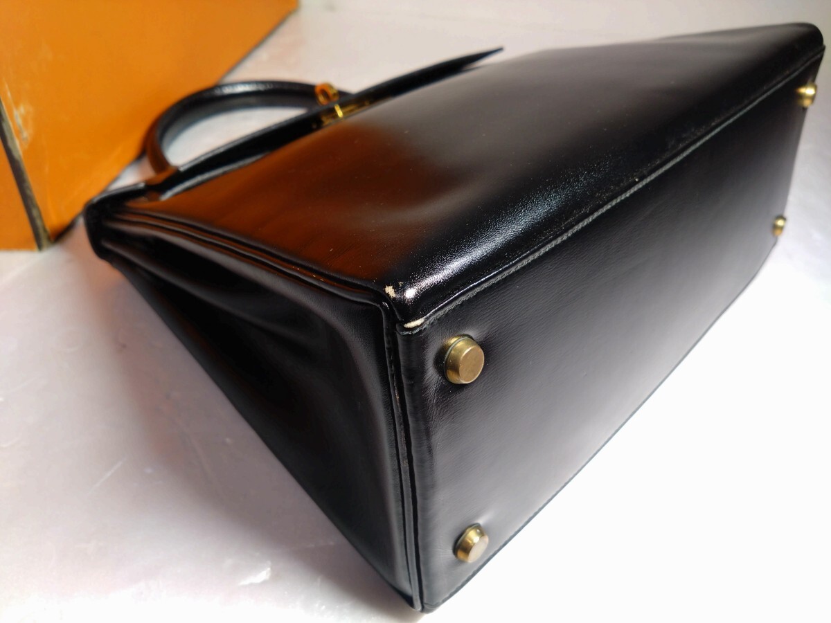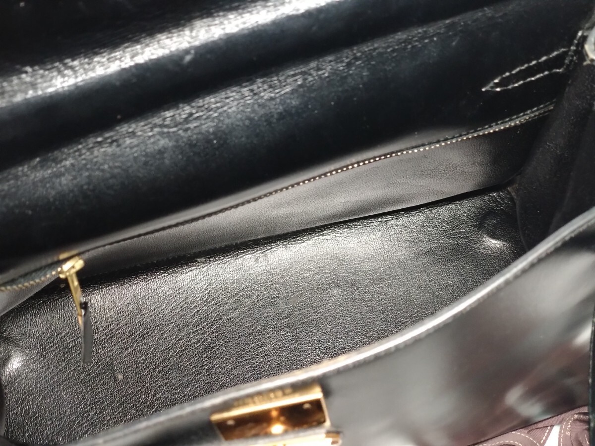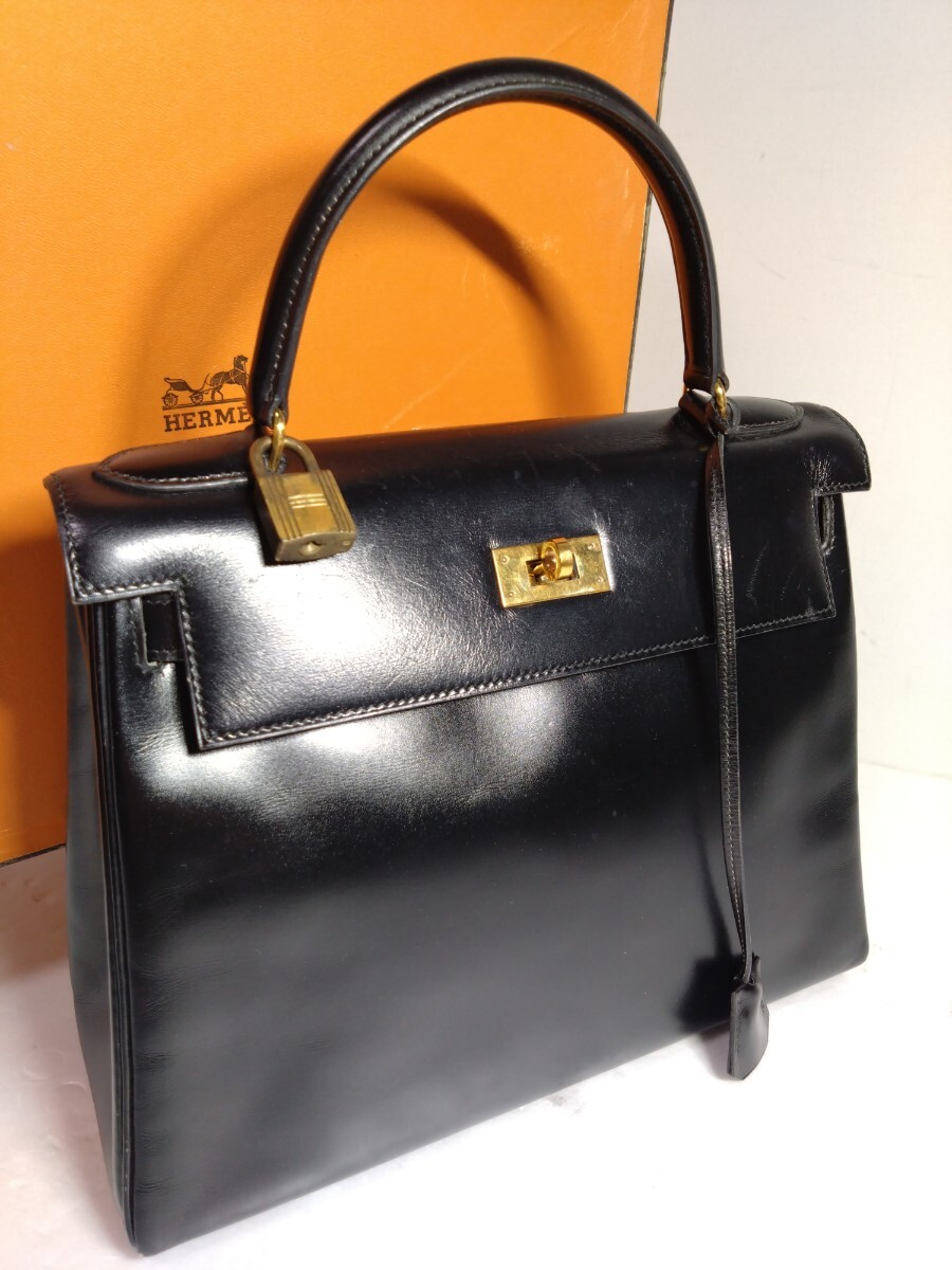HERMES エルメス ケリー28 内縫い ボックスカーフ ブラック 黒 〇I刻印 ゴールド金具 牛革 レディース ハンドバッグ 中古