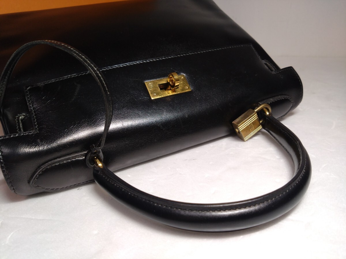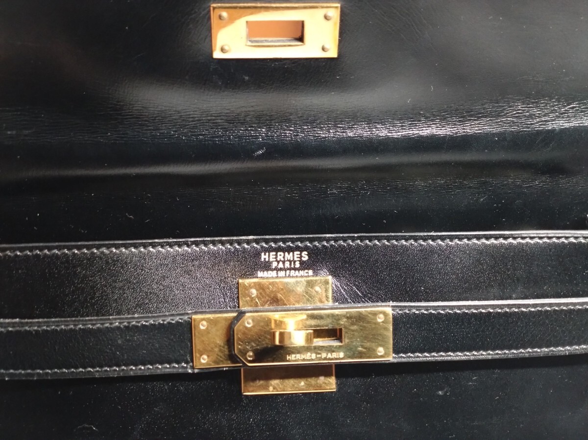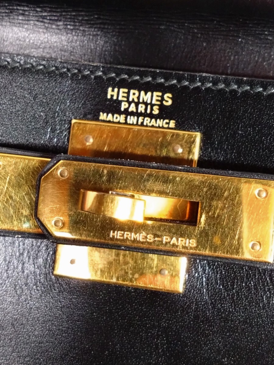 HERMES エルメス ケリー28 内縫い ボックスカーフ ブラック 黒 〇I刻印 ゴールド金具 牛革 レディース ハンドバッグ 中古