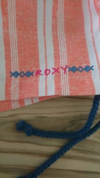 オレンジ×白のストライプとウエスト部分のマルチカラーのステッチが明るくかわいい印象です。