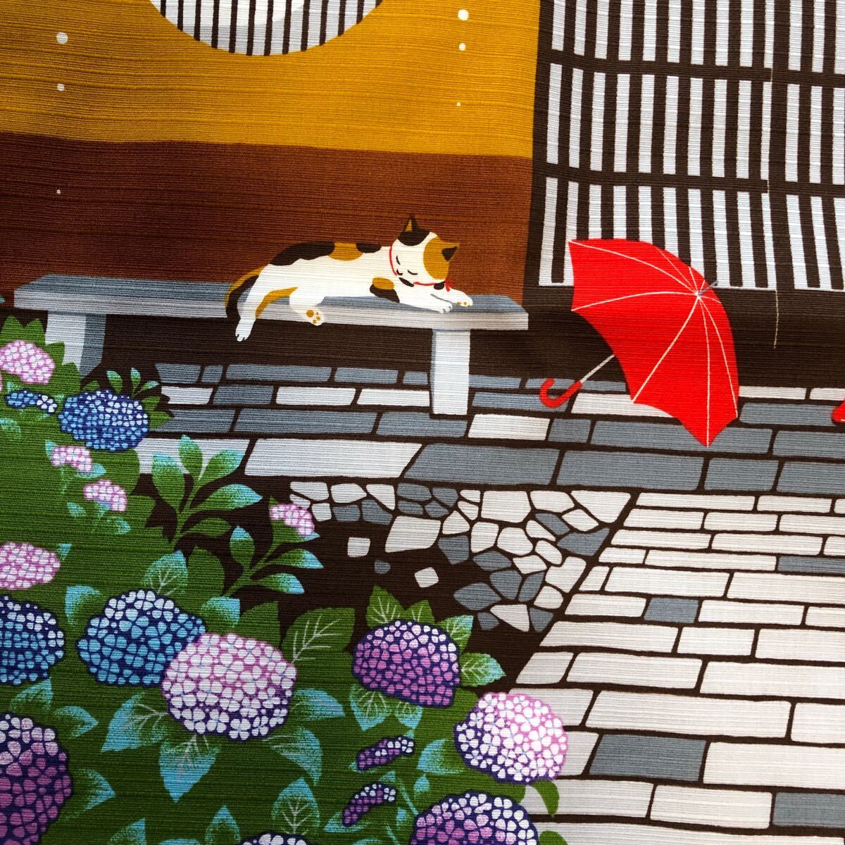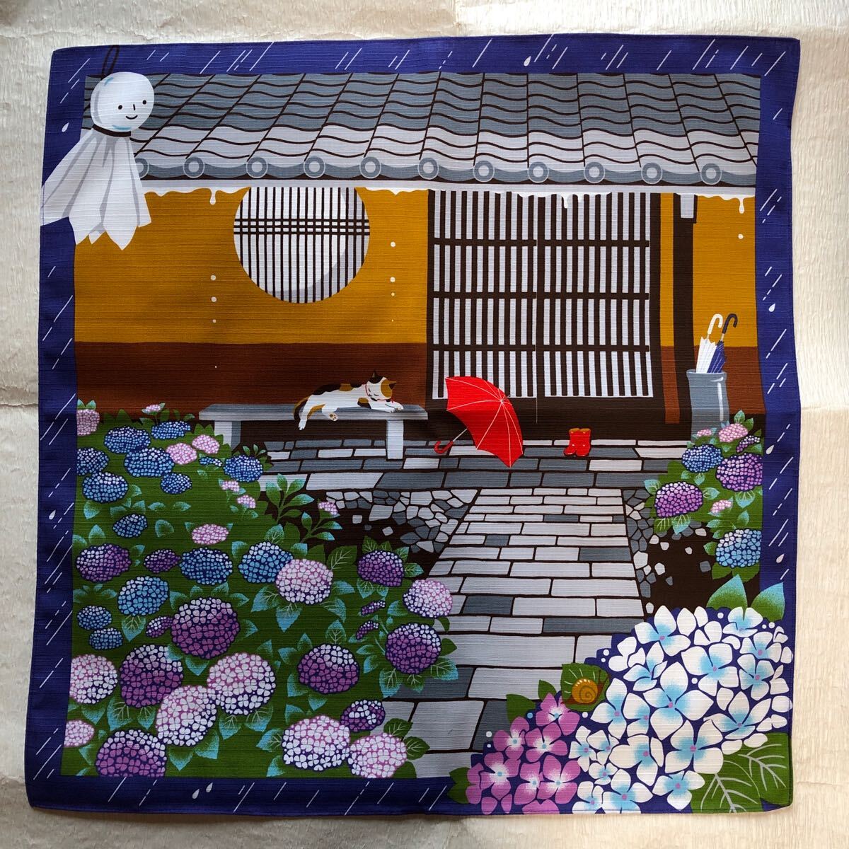 風呂敷 紫陽花 猫 てるてる坊主 傘 チーフ 季節の小風呂敷 みけの雨宿り 綿