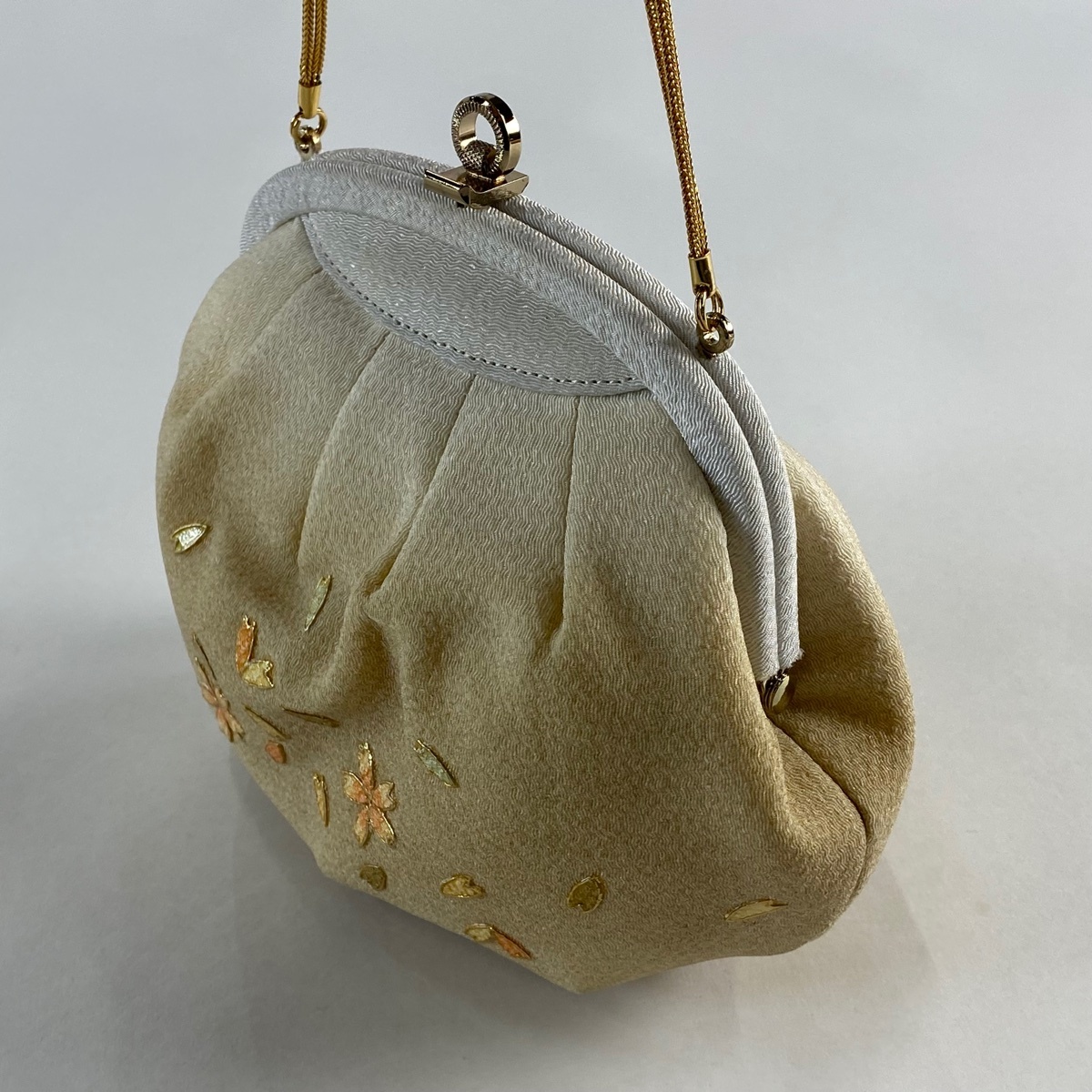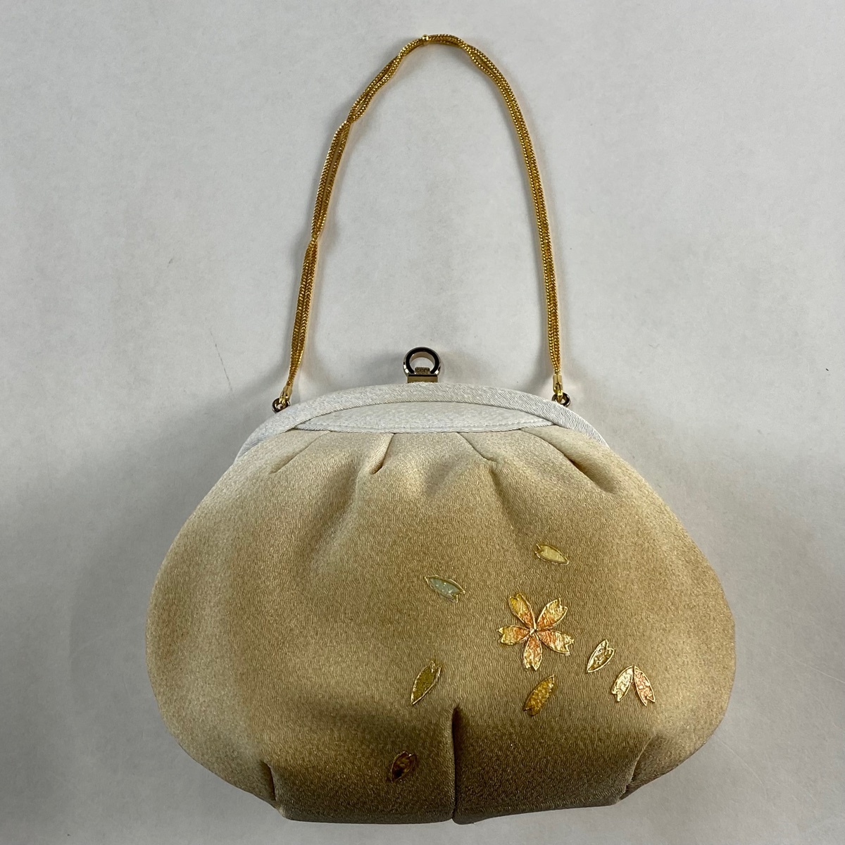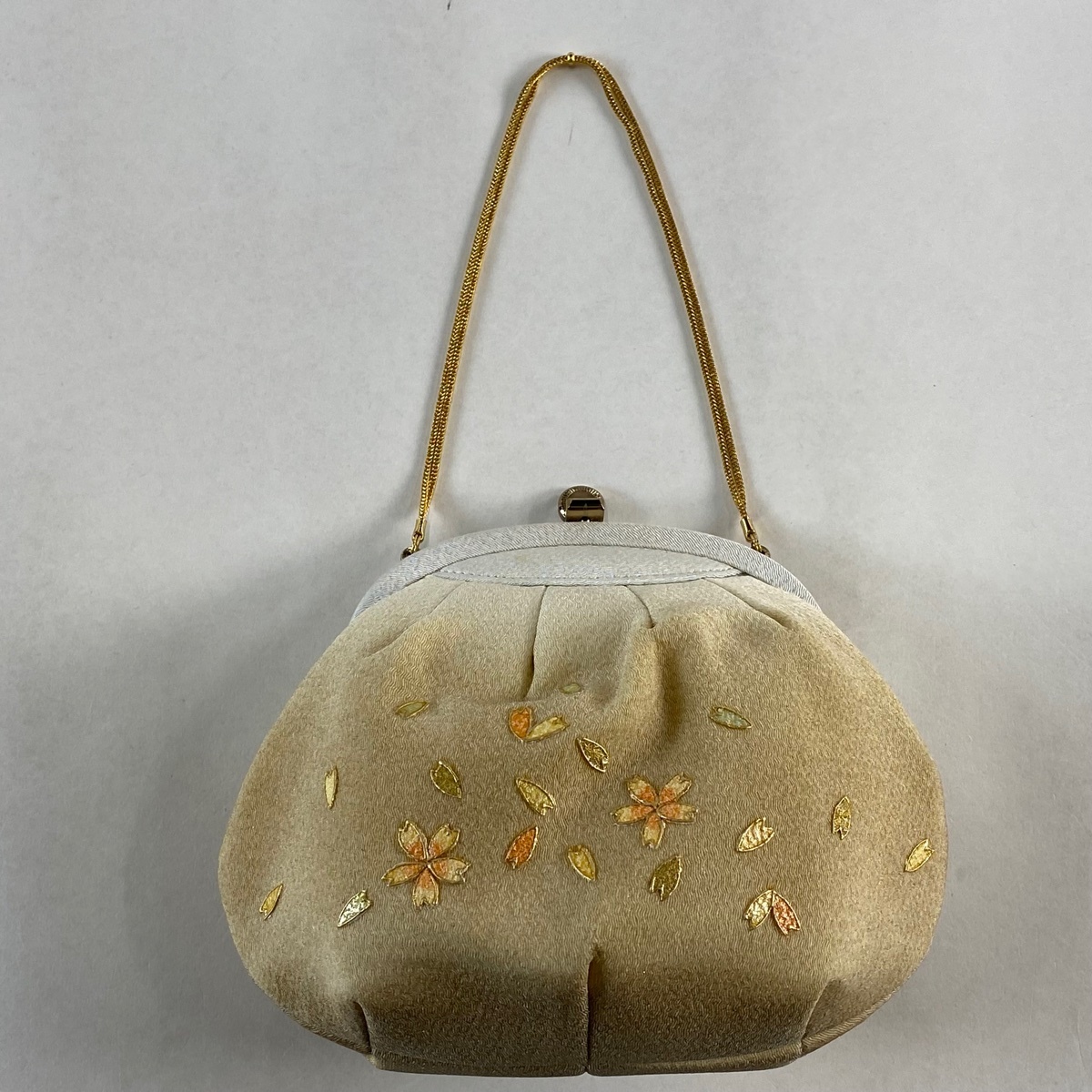 和装バッグ 優品 フォーマル 桜 花びら 金彩 ぼかし ベージュ 正絹 和装小物 【中古】 |