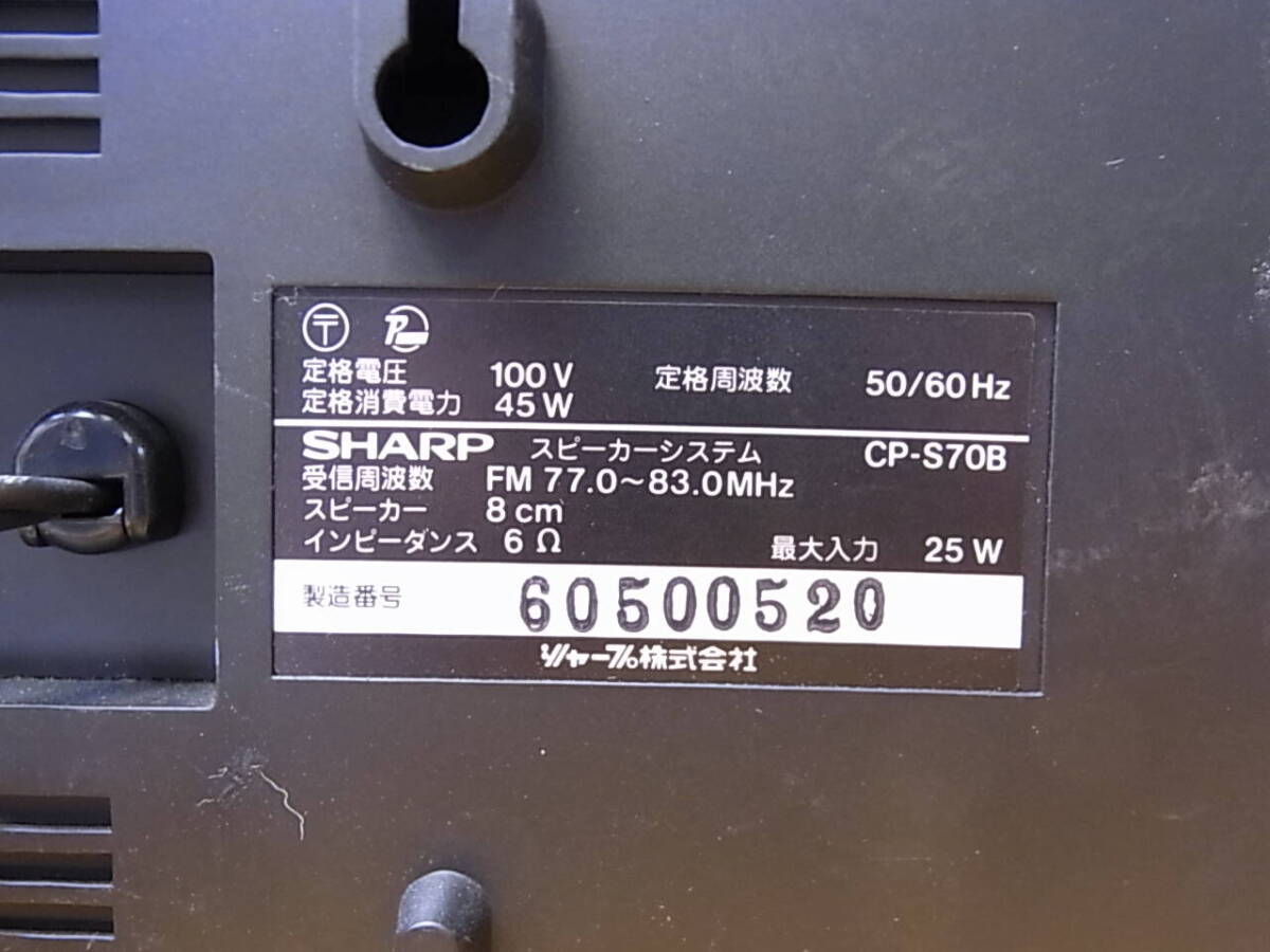 | □Cc/647☆シャープ SHARP☆ペアスピーカー☆CP-S70B☆動作不明☆ジャンク | |