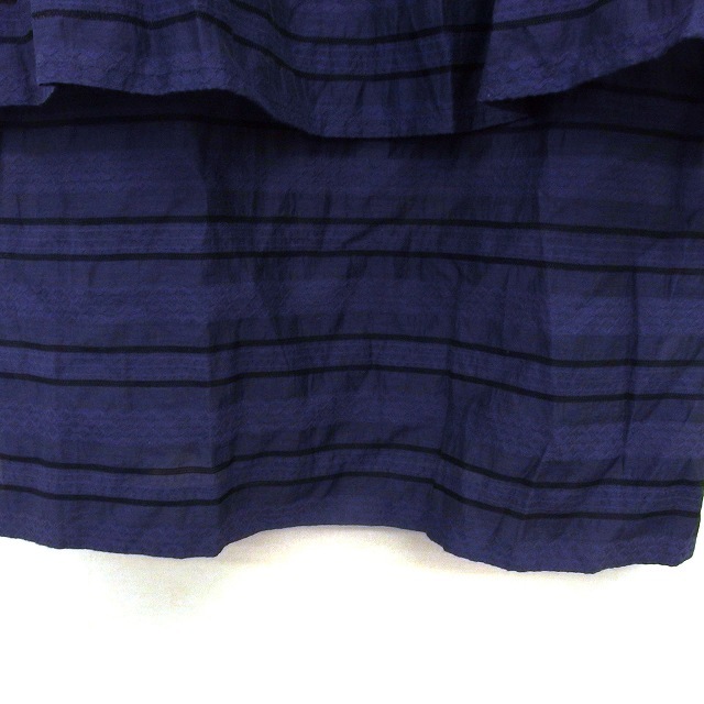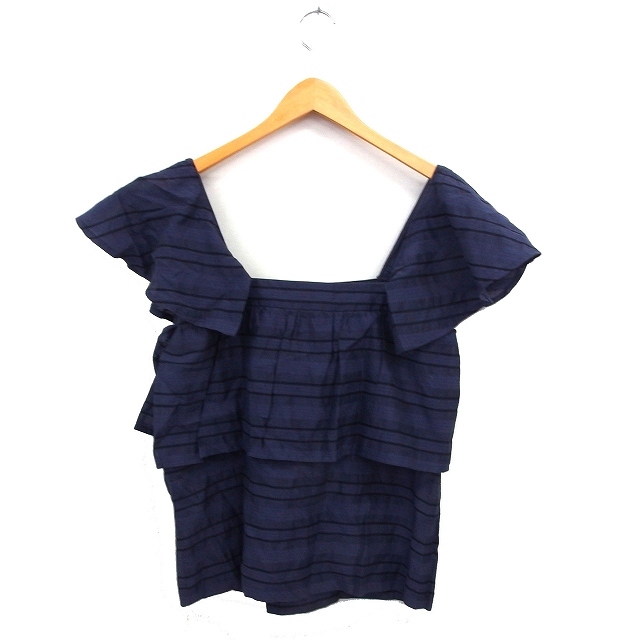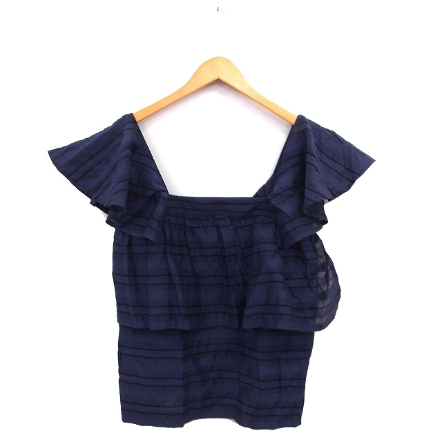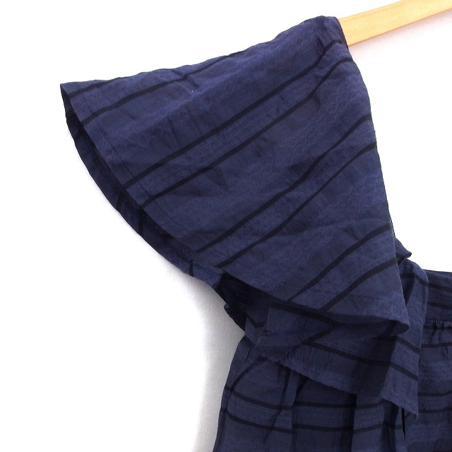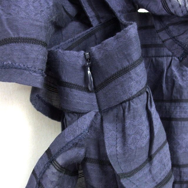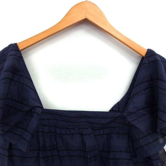 ポール&ジョー PAUL&JOE ボーダー ブラウス 透け感 ギャザー コットン混 半袖 2 紺 ネイビー /NT16 レディース