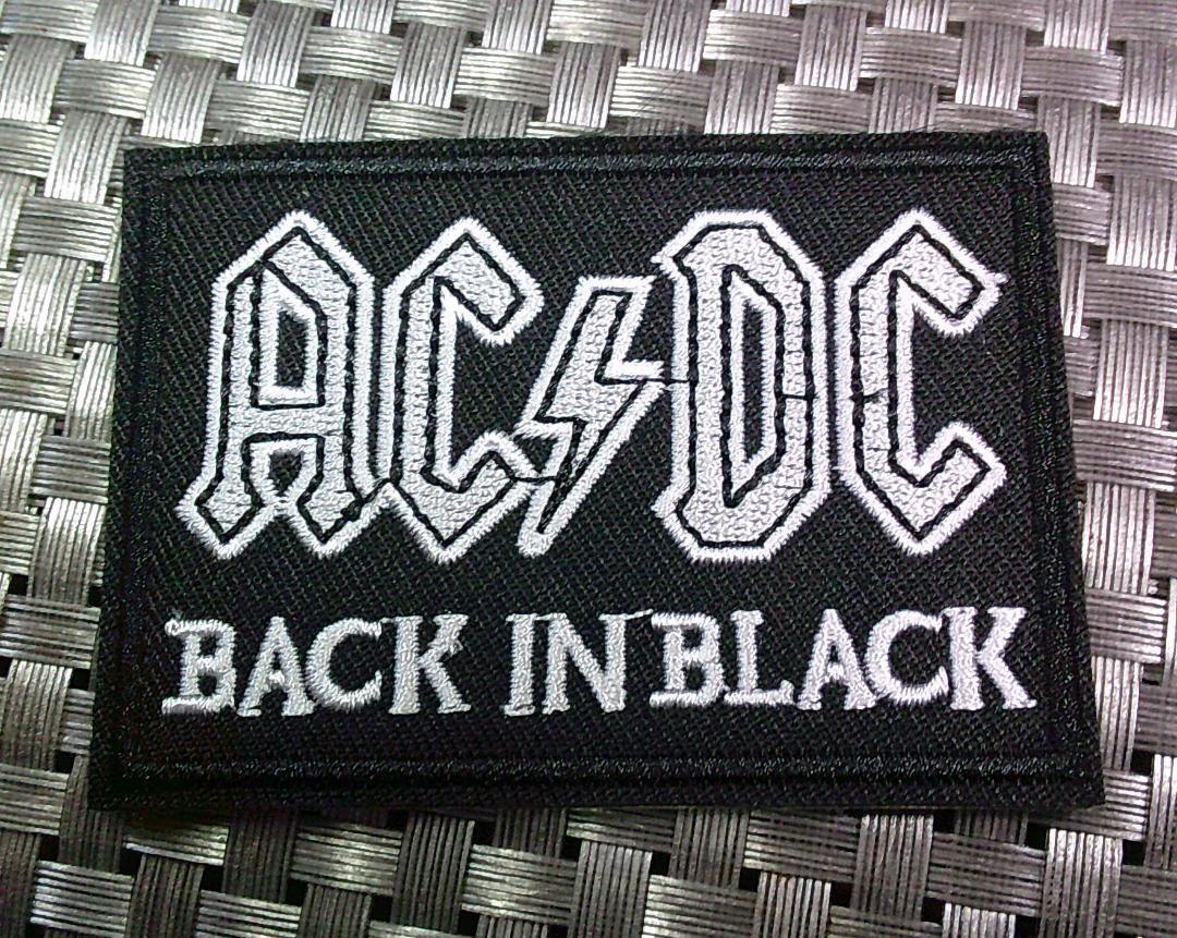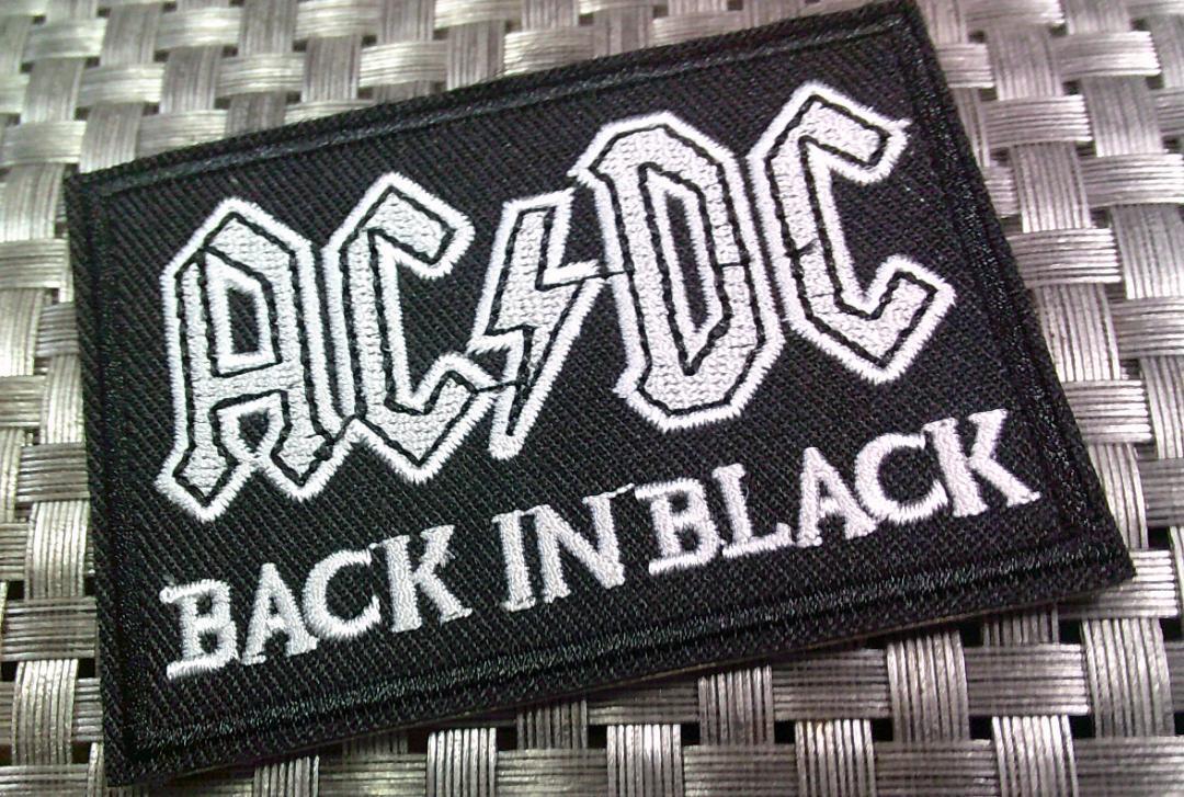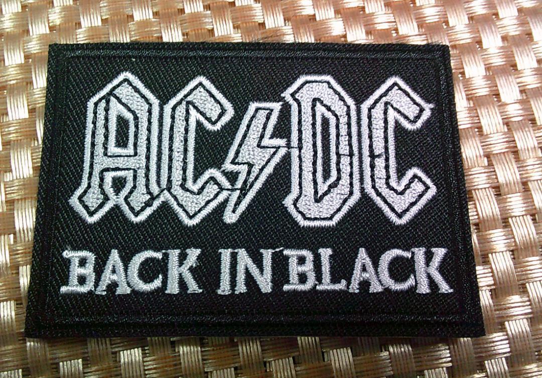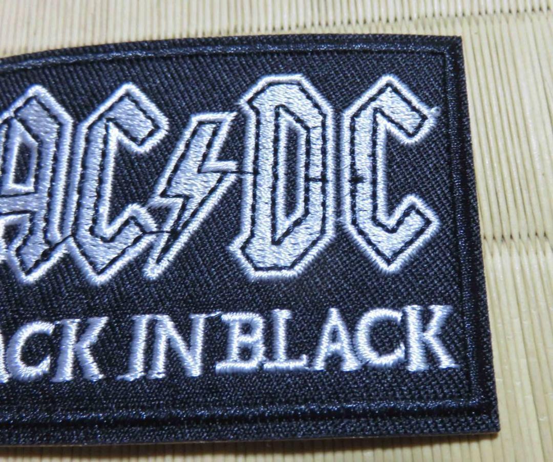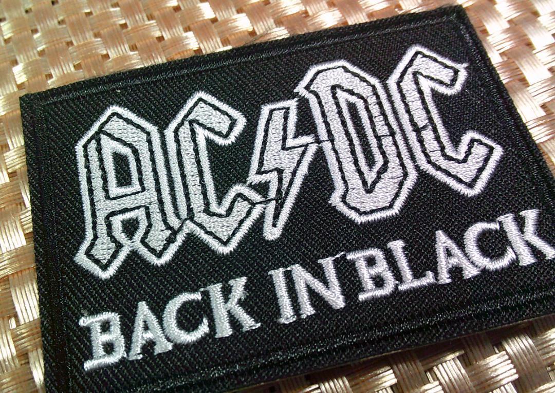 《四角AC/DC黒長方形》四角 黒銀白◆新品バックインブラック BACK IN BLACK AC/DC オーストラリア ヘビーメタルバンド 刺繍ワッペン