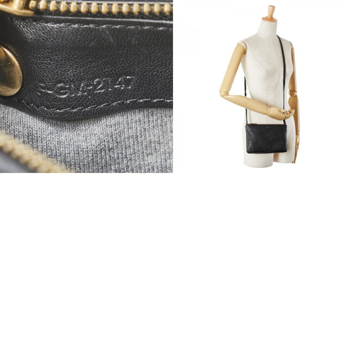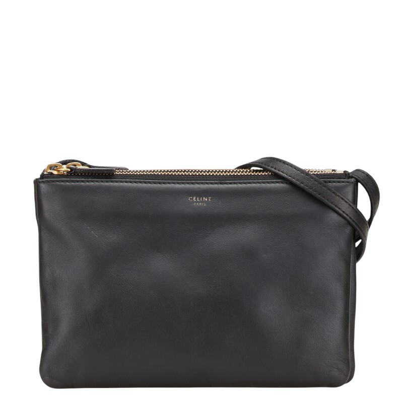 セリーヌ トリオ スモール 斜め掛け ショルダーバッグ ブラック レザー レディース CELINE 【中古】