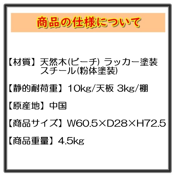 ![]() プランタースタンド PLS-51 グリーン 商品の仕様について 【材質】天然木(ビーチ) ラッカー塗装 スチール(粉体塗装) 【静的耐荷重】10kg/天板 3kg/棚 【原産地】中国 【商品サイズ】W60.5×D28×H72.5 【商品重量】4.5kg ◇◆発送について◆◇