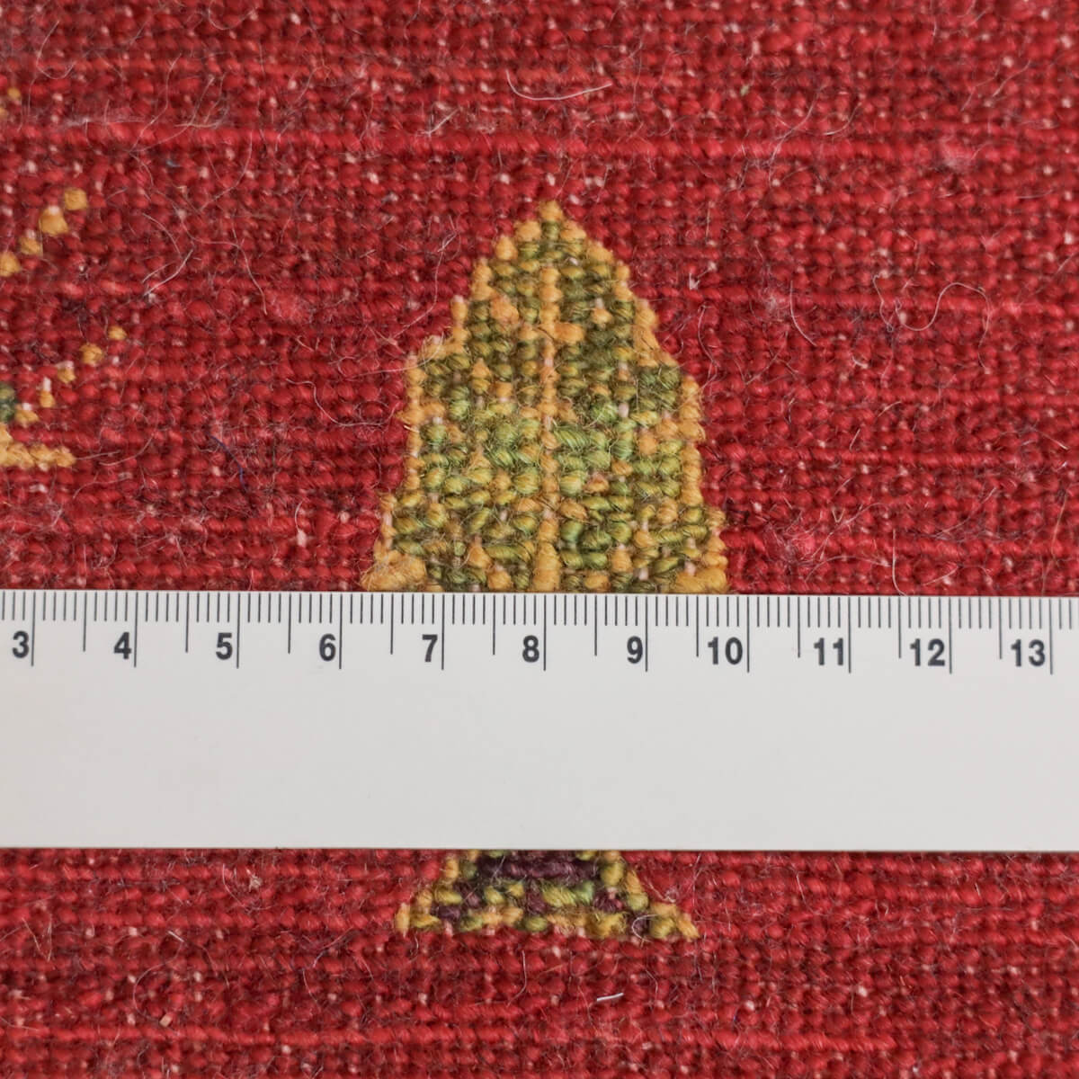 品番:HSS-71553サイズ:84×54cm厚み:写真で表示(読み方例:1567=15.67ミリ)産地:イラン・シラーズ素材:ウール織りタイプ:ルリバフ、手織り送料:無料濃淡のグラデーションが全体に入った、温かみのある赤を基調にした「ツリーオブライフ(生命の木)」のモチーフ。余白のあるシンプルな雰囲気です。ルリ族によって織られる「ルリバフ」というギャッベは、通常のギャッベの織り目よりもはるかに細かく織られています。ルリバフは高い技術を持つ選ばれた織り子だけが手掛けることができ、デザインは細やかで柔らかなウール素材、やんわりと沈み込む快適な踏み心地のハイランクな上質ギャッベです。照明の違いで色合いが多少違って見えます。また、ギャッベは毛足に向きがあるので、見る方向で、明るかったり暗かったりも見えます。※昼白色での撮影