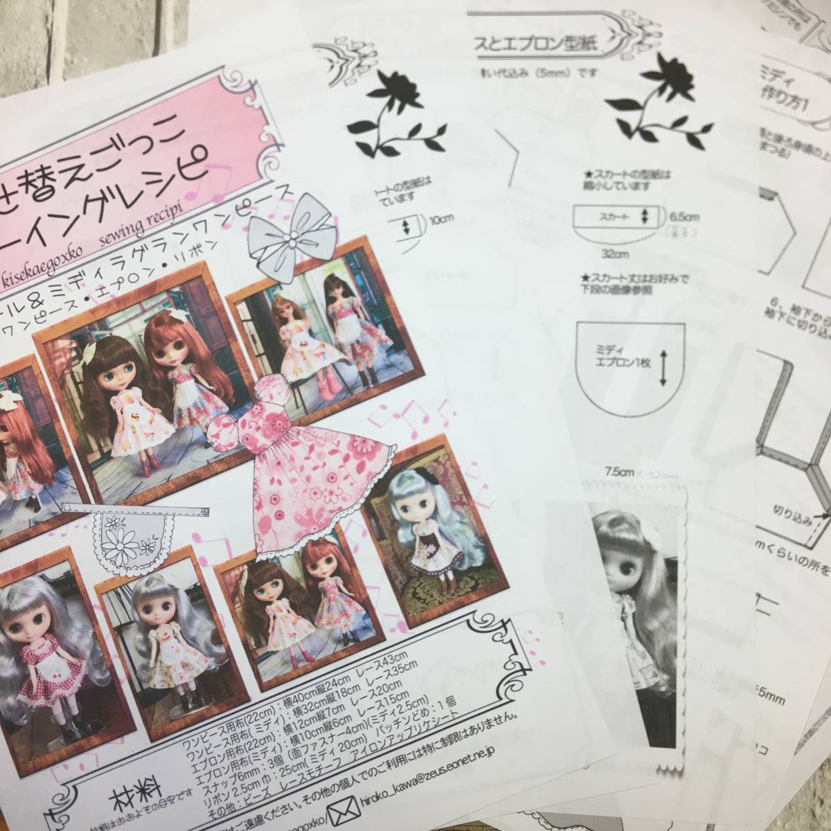 ワンピース(半袖のみ)とエプロンとリボンが作れます。