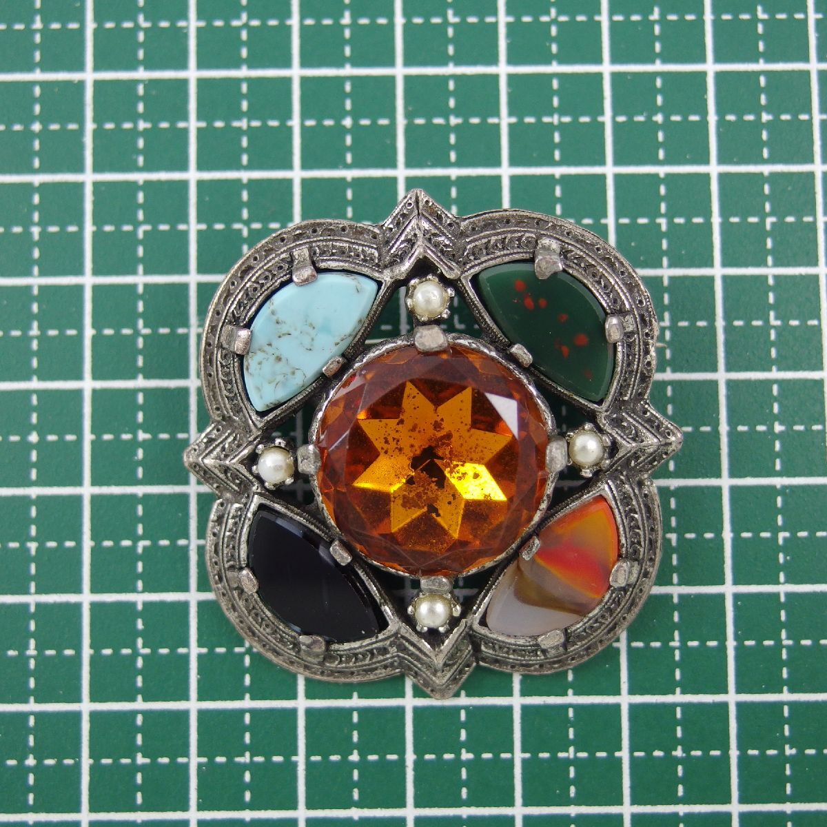UK3790◆【MIRACLE】◆ マルチカラーストーン クロスモチーフ 十字 ミラクル ケルト 英国 ヴィンテージブローチ ◆