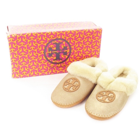 トリーバーチ TORY BURCH ムートンシューズ シアリングスリッパ スリッポン ロゴ 6 23cm ベージュ /AH4 ■GY19 レディース
