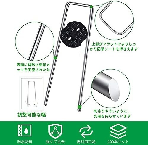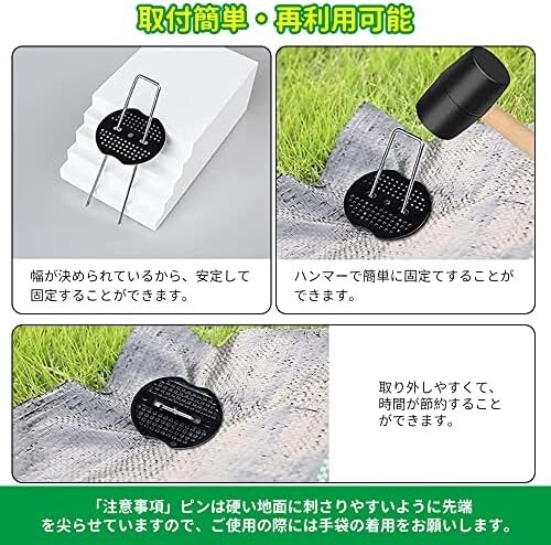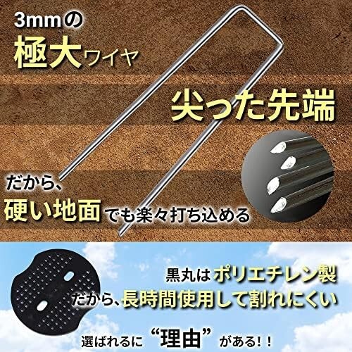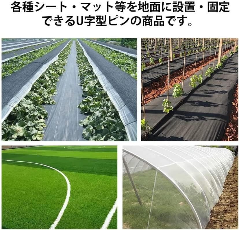 • 【幅広い用途】防草シート、人工芝、農業用防虫ネット、不織布、ビニールマルチ、各種シート・マット等を地面に設置・固定できるU字型ピンの商品です。