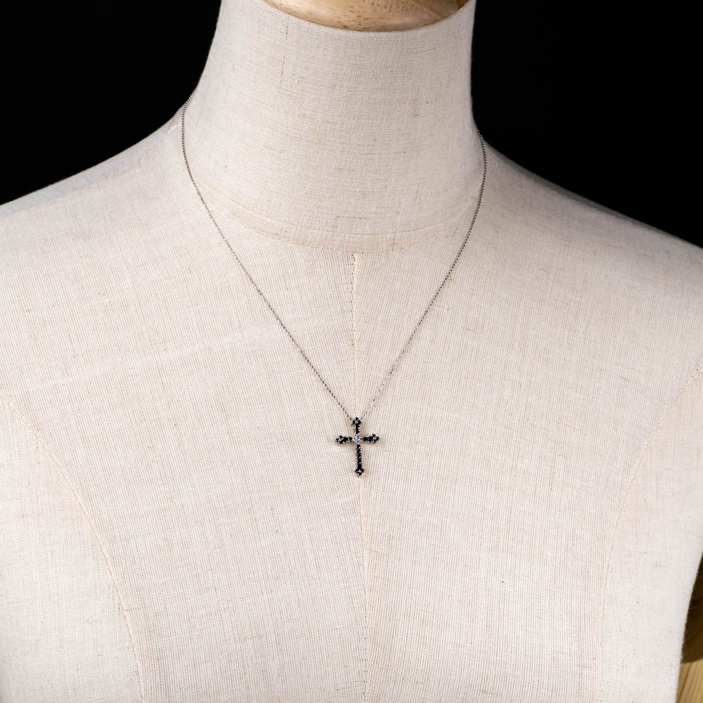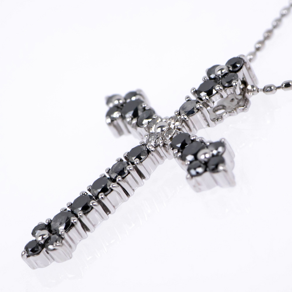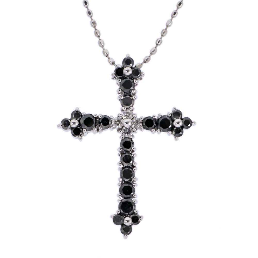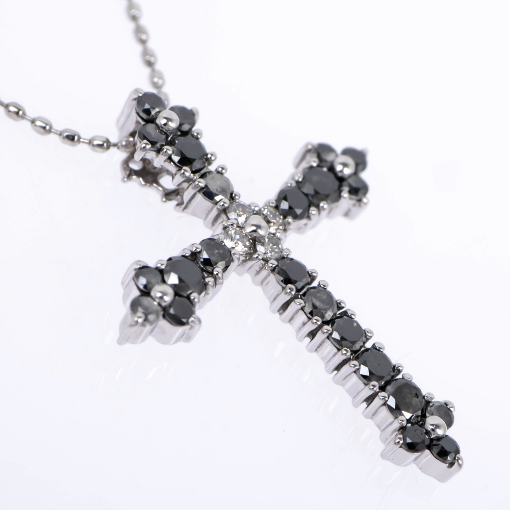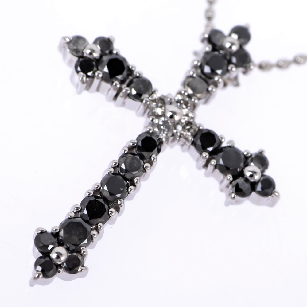 【名東】【JEWELRY】ネックレス クロス ブラックダイヤ 0.50ct ダイヤ 0.04ct K18WG ペンダント