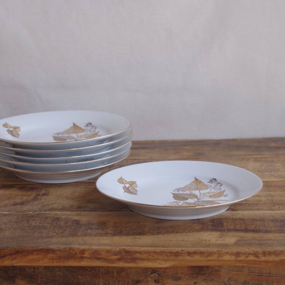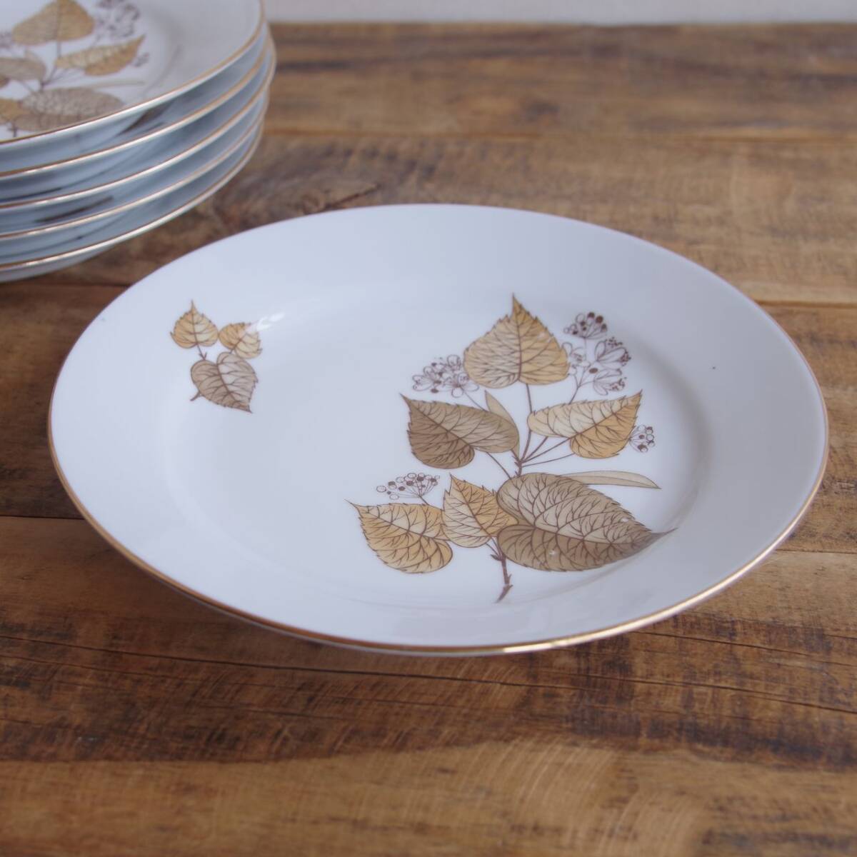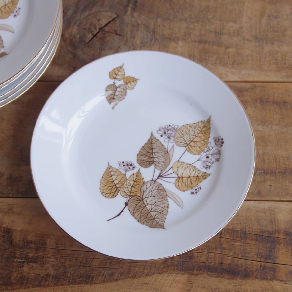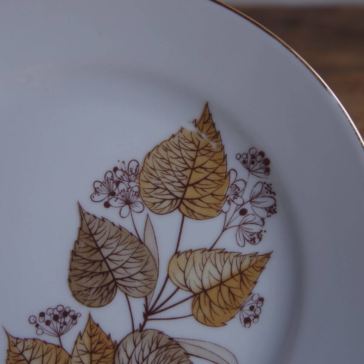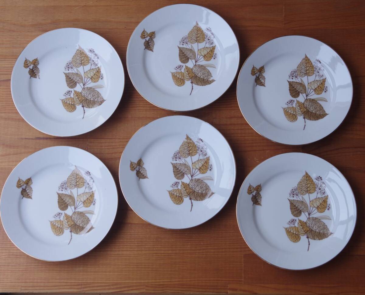 東ドイツ KAHLA カーラ ブラウン リーフ柄 花柄 デザートプレート ケーキ皿 17cm #250520-12~17 レトロ ヴィンテージ食器 陶磁器