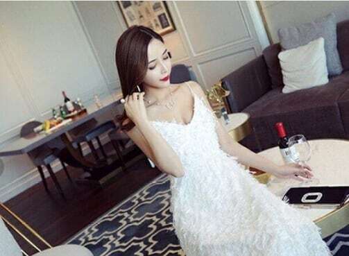 未使用 発表会 舞台衣装 結婚式 M(9号) フェザー キャミソール ドレス (OPN1084)
