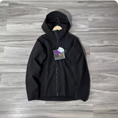 メンズ アウトドア カジュアル 通気性 防風 ソフトシェル ジャケット フード付き GM LT シリーズ 色: ベーシックブラック サイズ:S