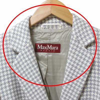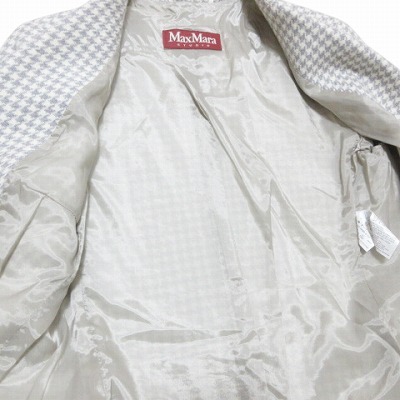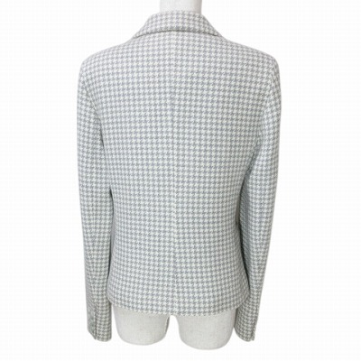マックスマーラステュディオ 千鳥格子 テーラード ジャケット バージンウール シングル 2B 総裏地 38 M相当 グレー ホワイト X レディース