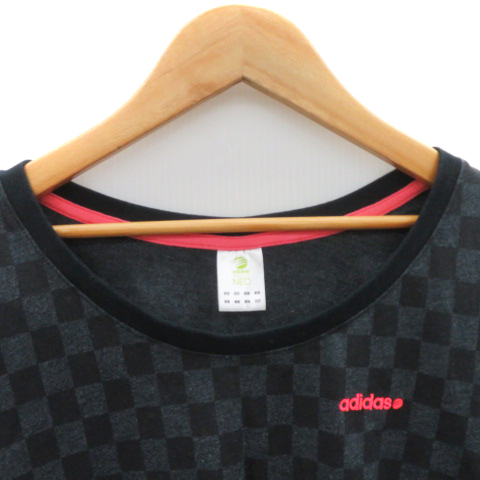 アディダスネオ adidas neo Tシャツ カットソー 半袖 ロゴ ブロックチェック柄 L 黒 ブラック /YK30 レディース