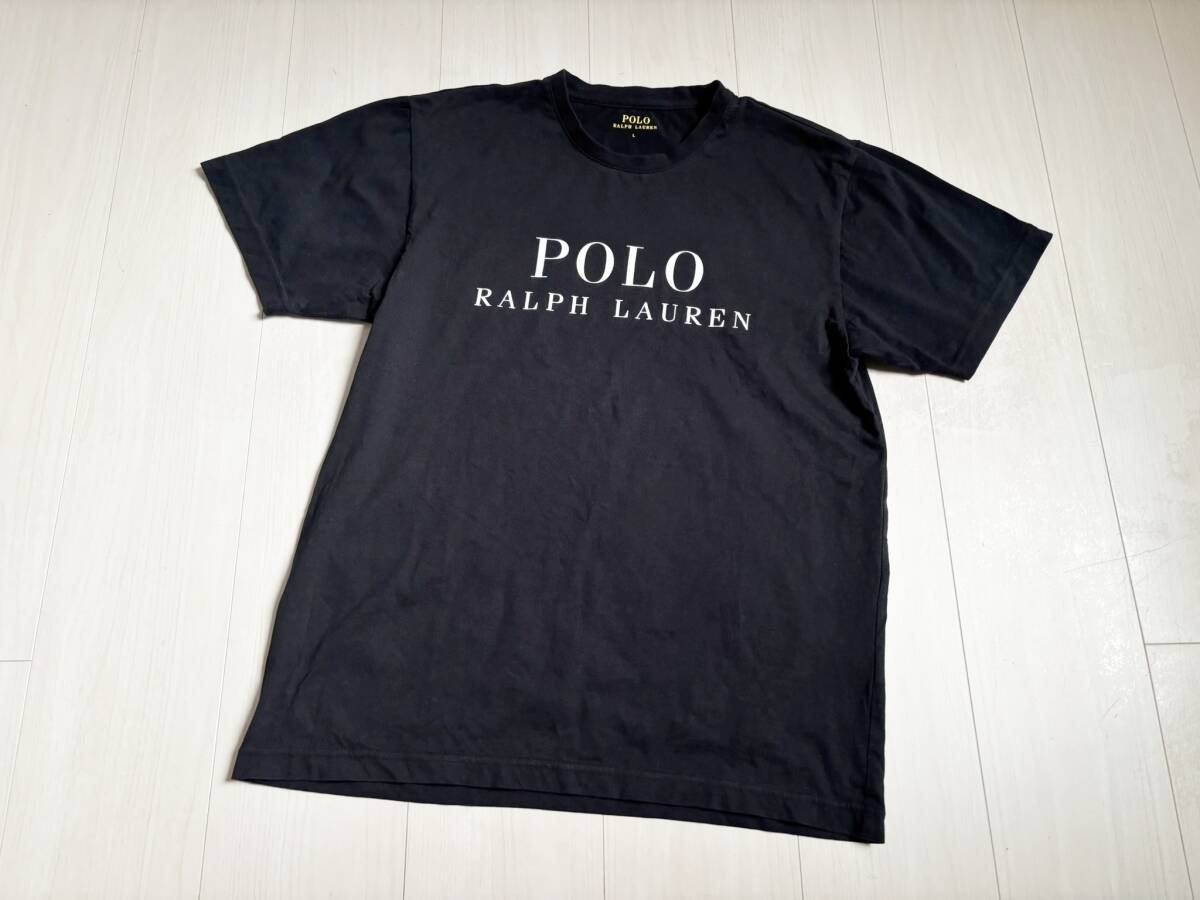 美品 POLO RALPH LAUREN ポロ ラルフローレン tシャツ カットソー ロゴ プリント 半袖 L コットン 黒 ブラック ▼0568