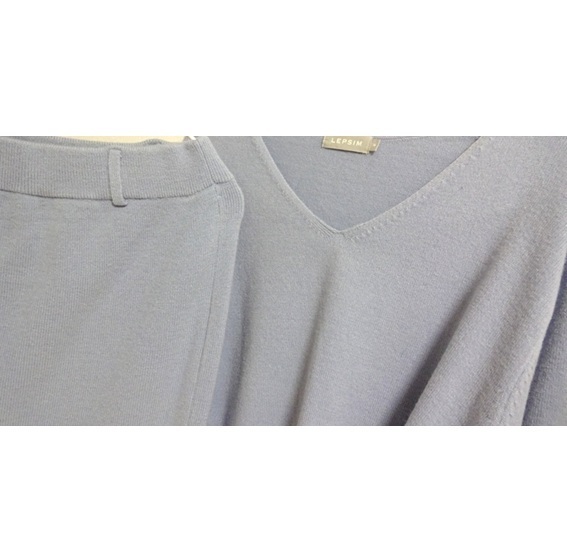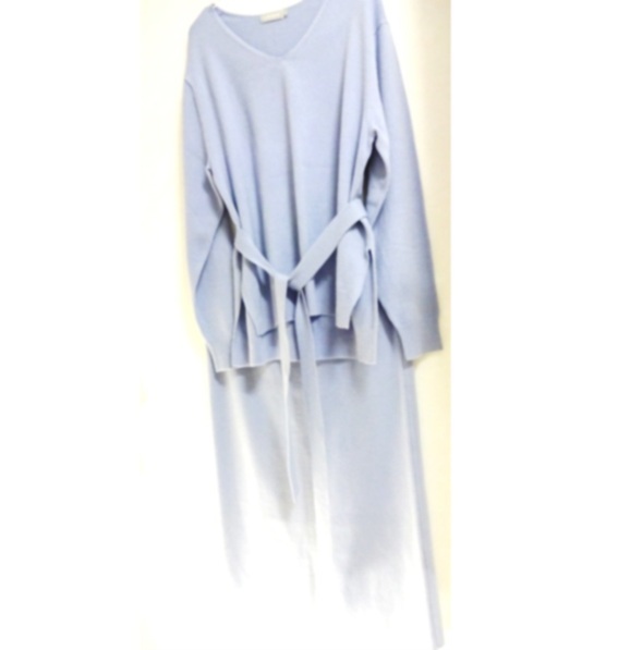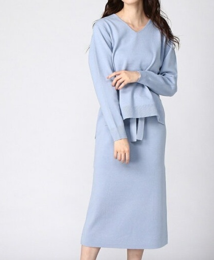 レプシィム LEPSIM 水色 ニット セットアップ Vネック タイトスカート ミモレ丈 ブルー 検索ワンピース ニットスーツ