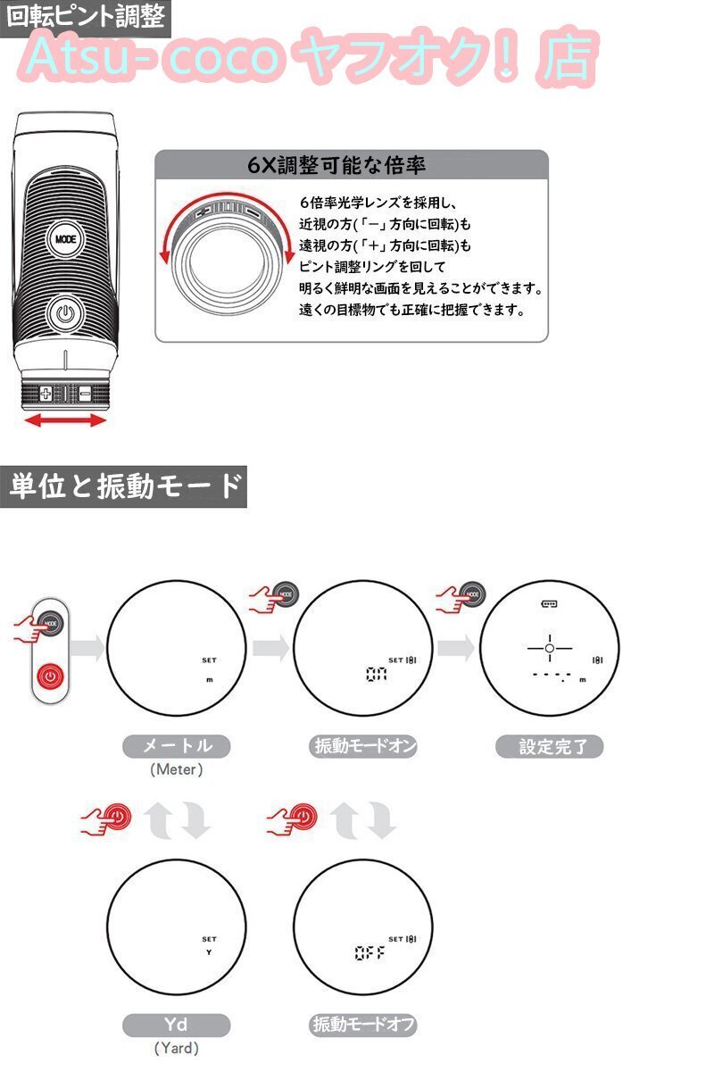 ゴルフ用レーザー距離計 計測器 OLED 6倍望遠 高透過レンズ 0.5S測定 高低差測定/測定距離3~500m IP54防塵防水 充電式 軽量 振動機能 1222