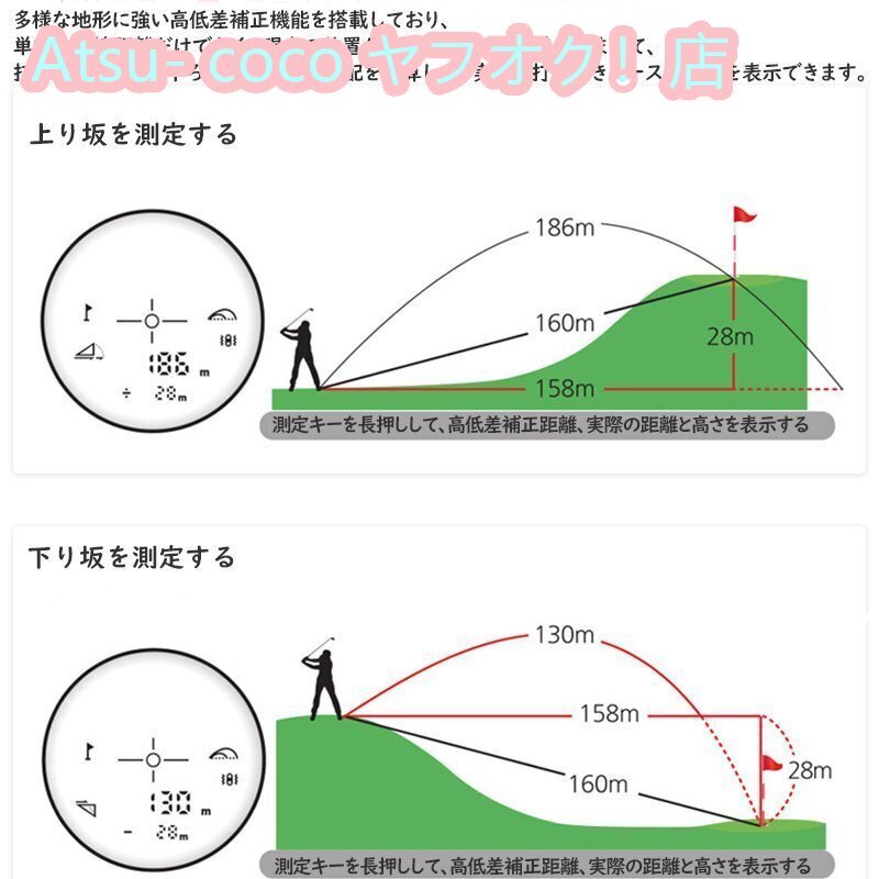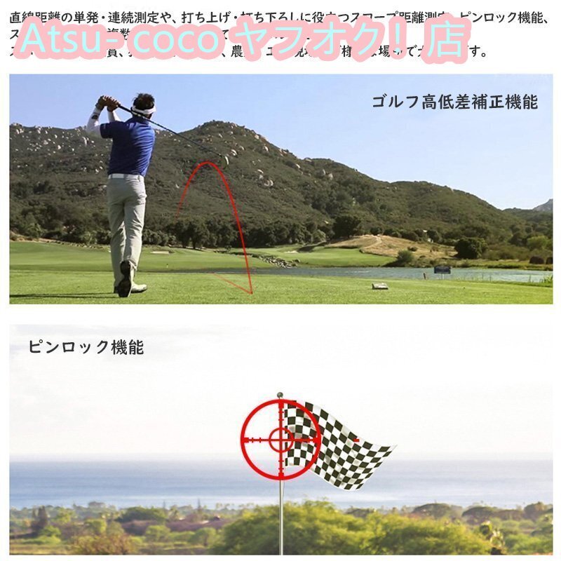 ◆【初心者からプロまで満足できる機能が装備】電源ボタンを一回押すと直線距離を簡単に測定でき、最速0.5秒で瞬時に測定結果を表示します。押し続ける状態で、スキャンした目標の距離をリアルタイムに測定でき、バンカーやハザードなどの障害物の距離も素早く見分け、より正確なコースを把握できます。 そして、高低差をふまえた打つべき距離を計算できるスロープモードと、誤って目標物の背景を測定しないよう、近くの目標物の距離を優先的に表示できるピンロックモードも搭載し、山岳地域など高低差が大きい地形やピンフラッグと林が分かりにくいシーンでも快適にプレイしています。※緑の外輪は、ピンロックモードで測定した場合にのみ表示されます。ピンロックモードで電源ボタンを押し続けて左右にスキャンして、最も近い目標物をロックしたら緑の外輪と測定距離を表示し、本体が2回の振動アラームでお知らせします。予めご了承ください。