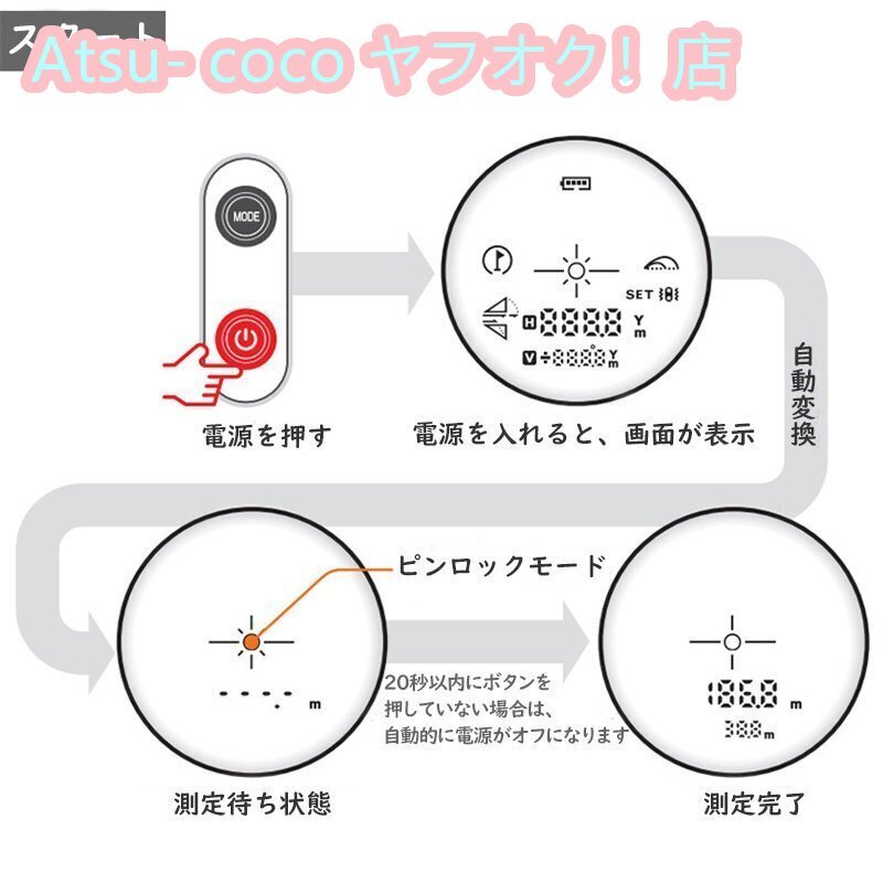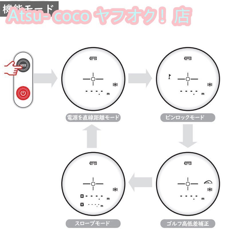 【機能モード】:直線距離モード、スロープモード、ピンロックモード、スピード測定モード、高低差補正機能