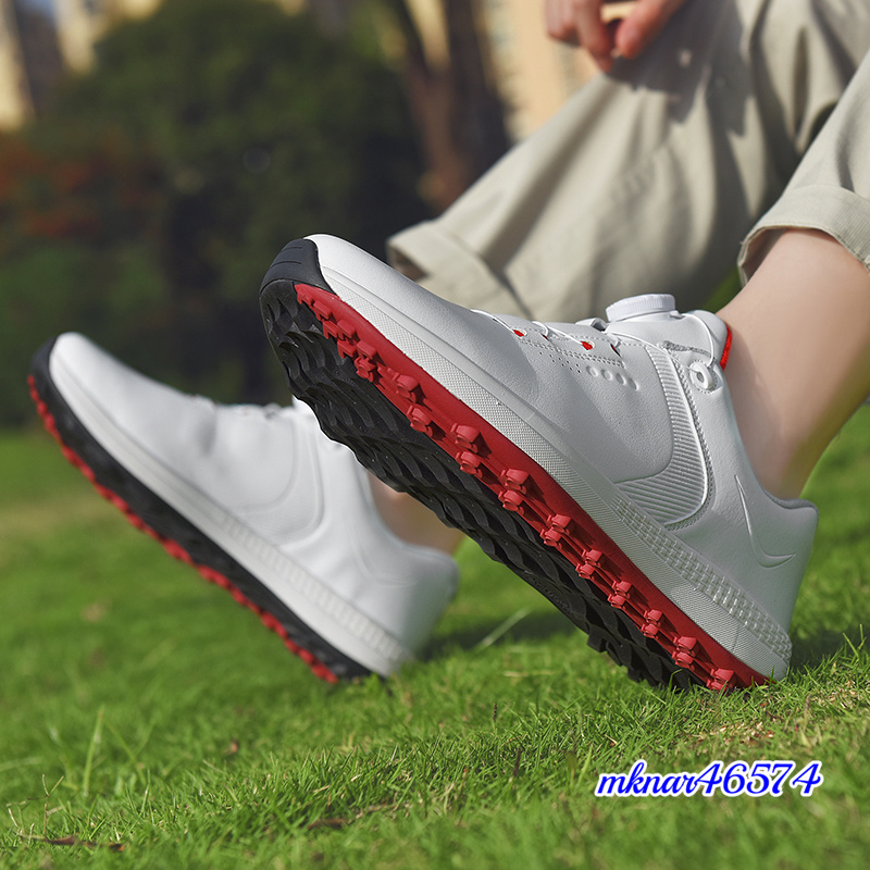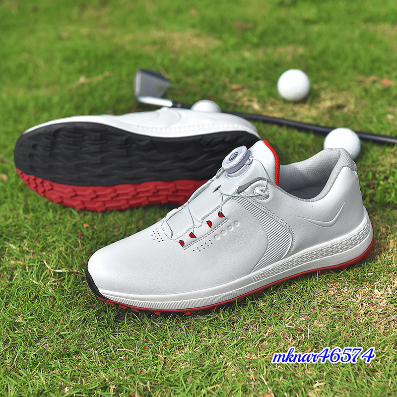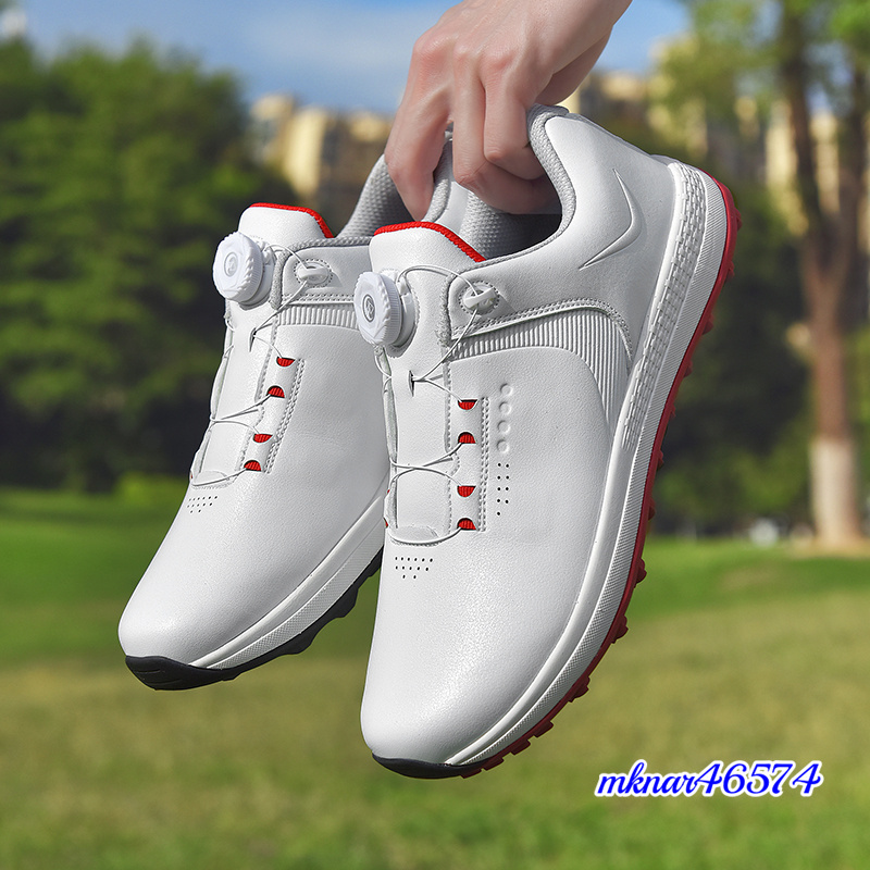 \SALE/シューズ メンズ ダイヤルゴルフシューズ 運動靴 幅広い フィット感 軽量 防水 防滑 耐磨 高級品 白/赤 26.5cm