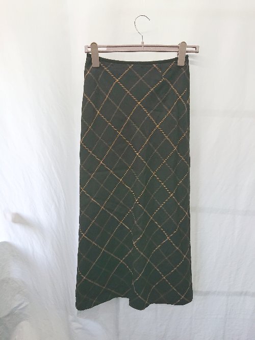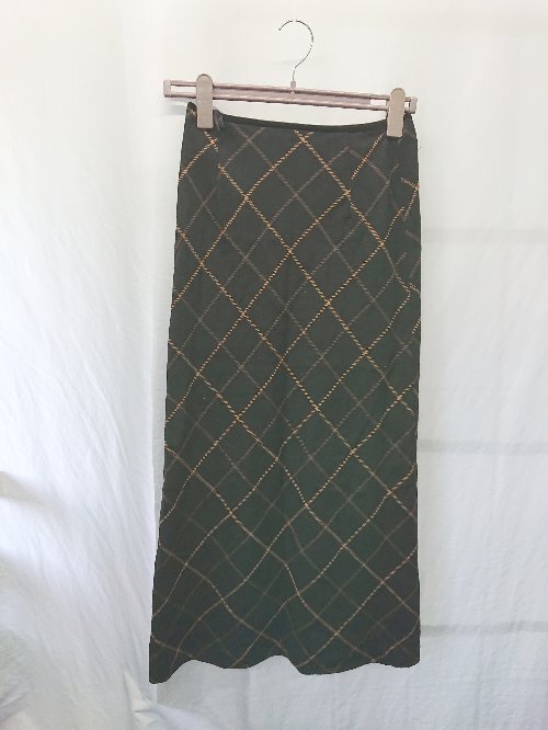 ◇ ⊇ TWO:C トゥーシー チェック柄 ウール ロング ナロー スカート サイズ4 ブラック ブラウン系 レディース E