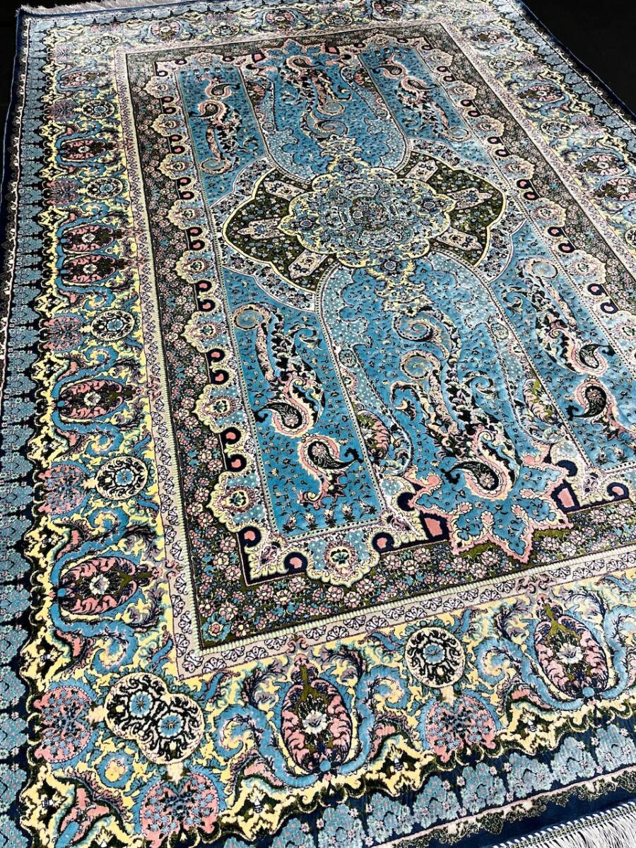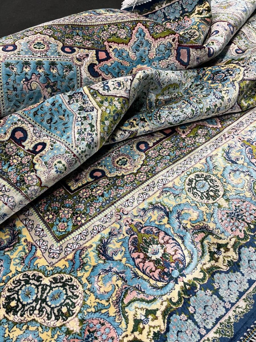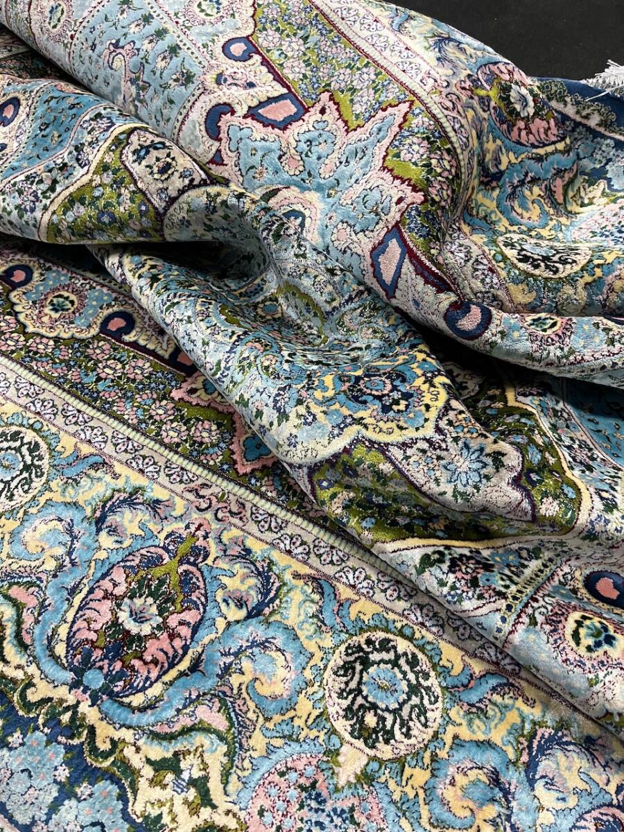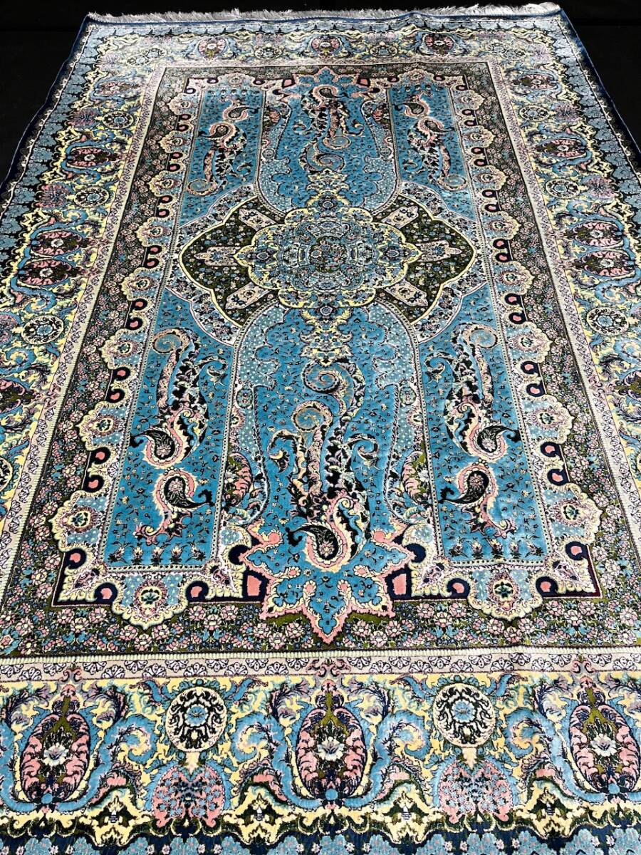 クム絨毯の歴史は1930年頃からと浅く、最初はウール絨毯を、後にシルク絨毯を織るようになりました。絹の産地としても有名なクムで、現在作られるほとんどの絨毯は100%シルク製です。