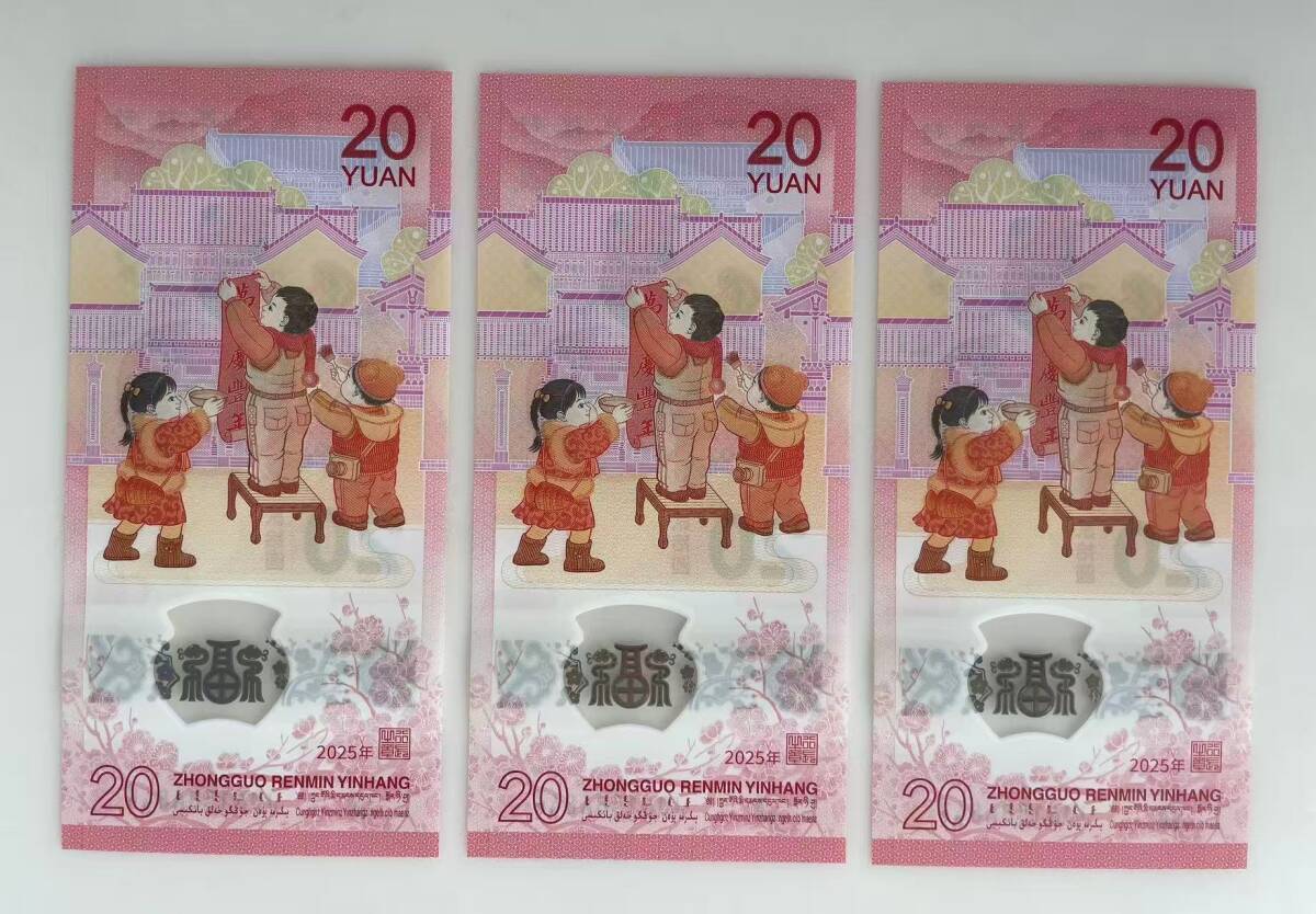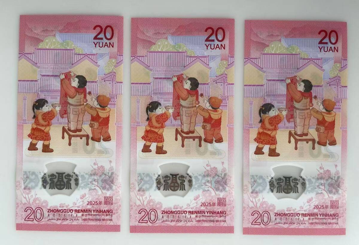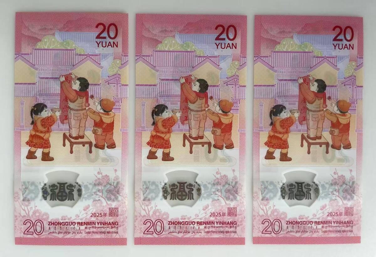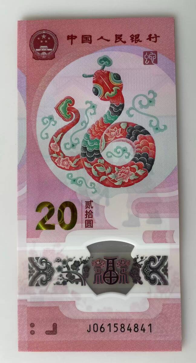 中国紙幣・2025年 中国生肖蛇記念紙幣・20圓・10枚連番・ピン札・完全未使用