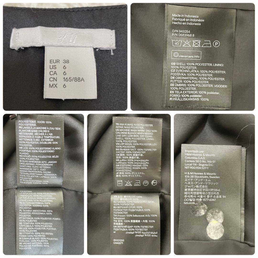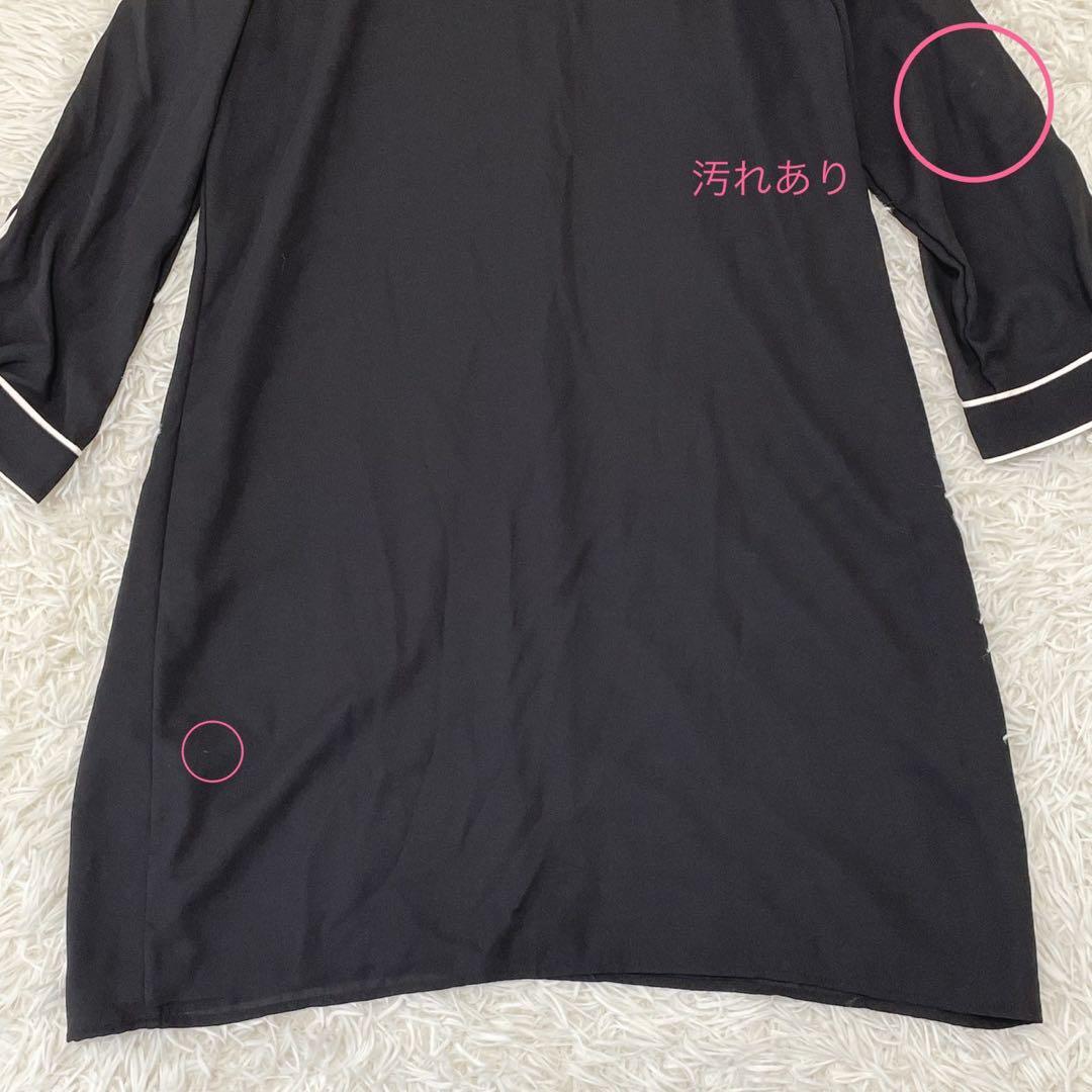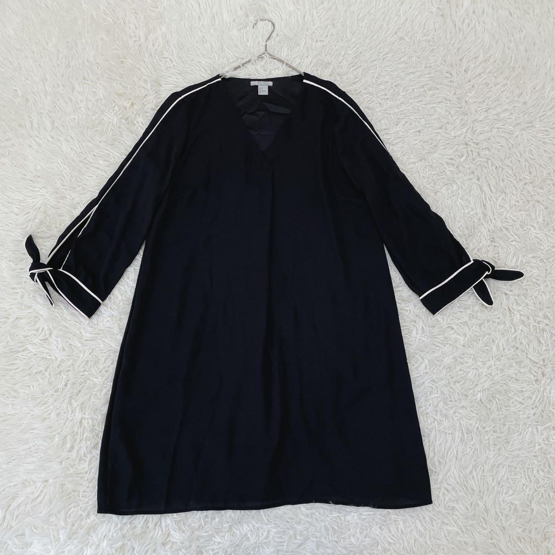 『H&M』 (38) Vネック膝丈ワンピース 袖リボン ホワイトパイピング 古着