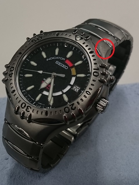 ただ、時計ケースに若干まだらな箇所があります。(赤い○の箇所です)