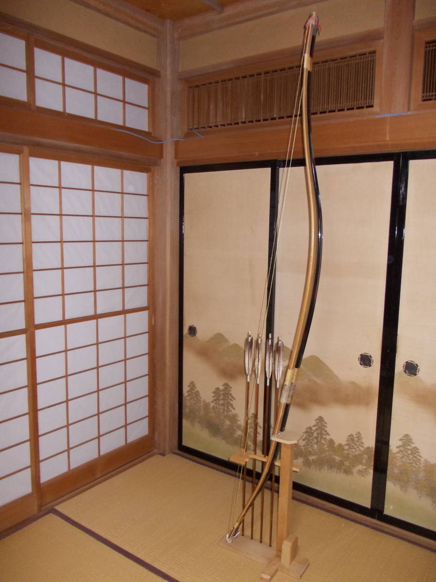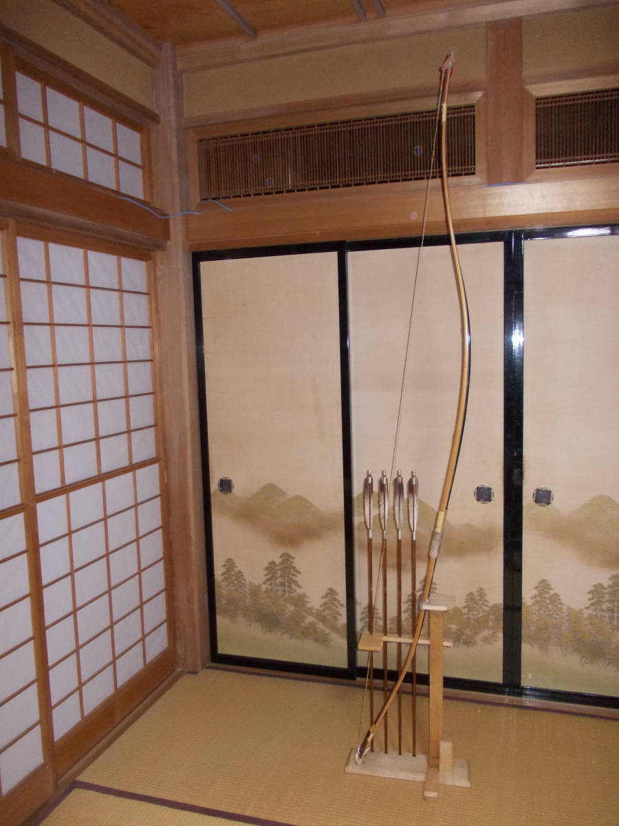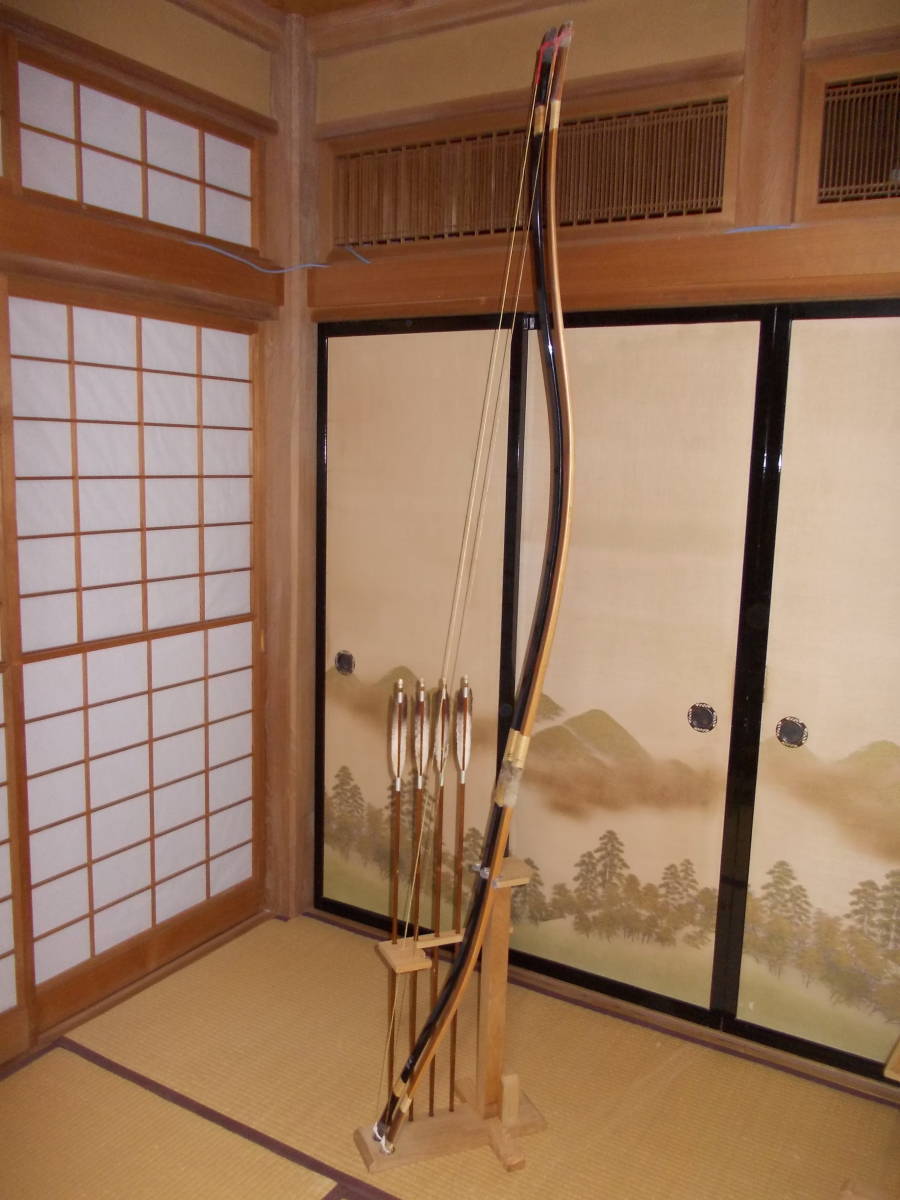 ご覧のような、弦をはったままの弓と4つ矢を奇麗に設置出来ます。
