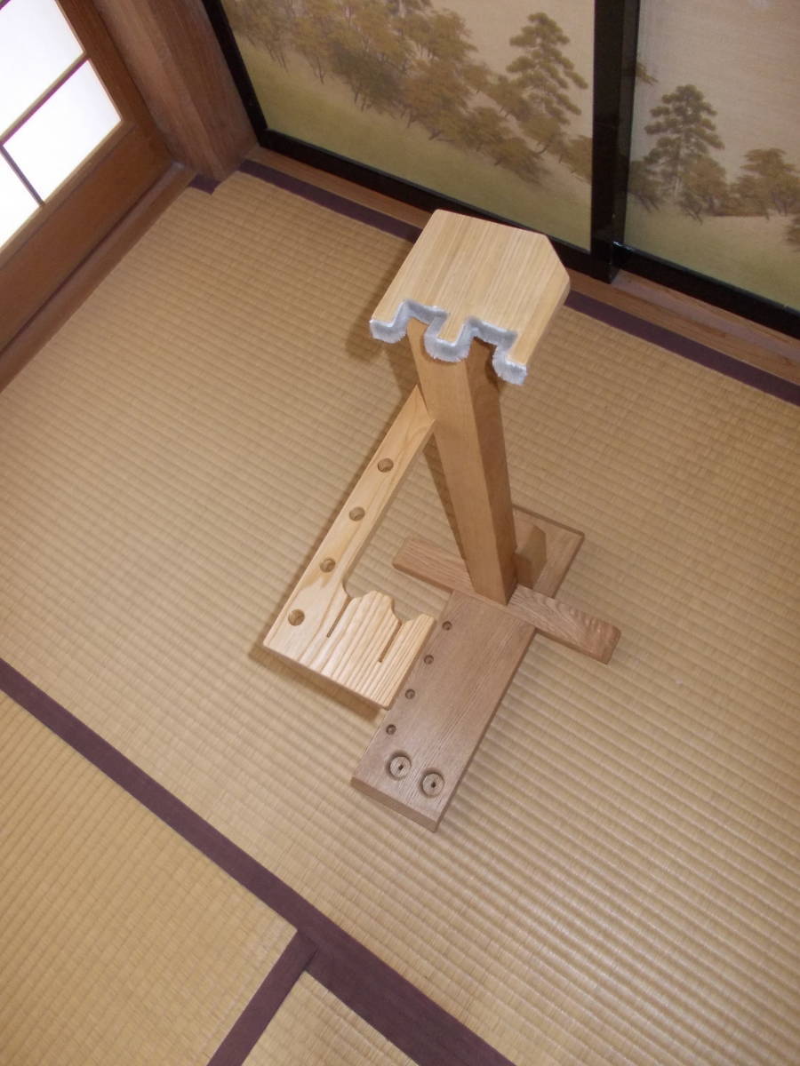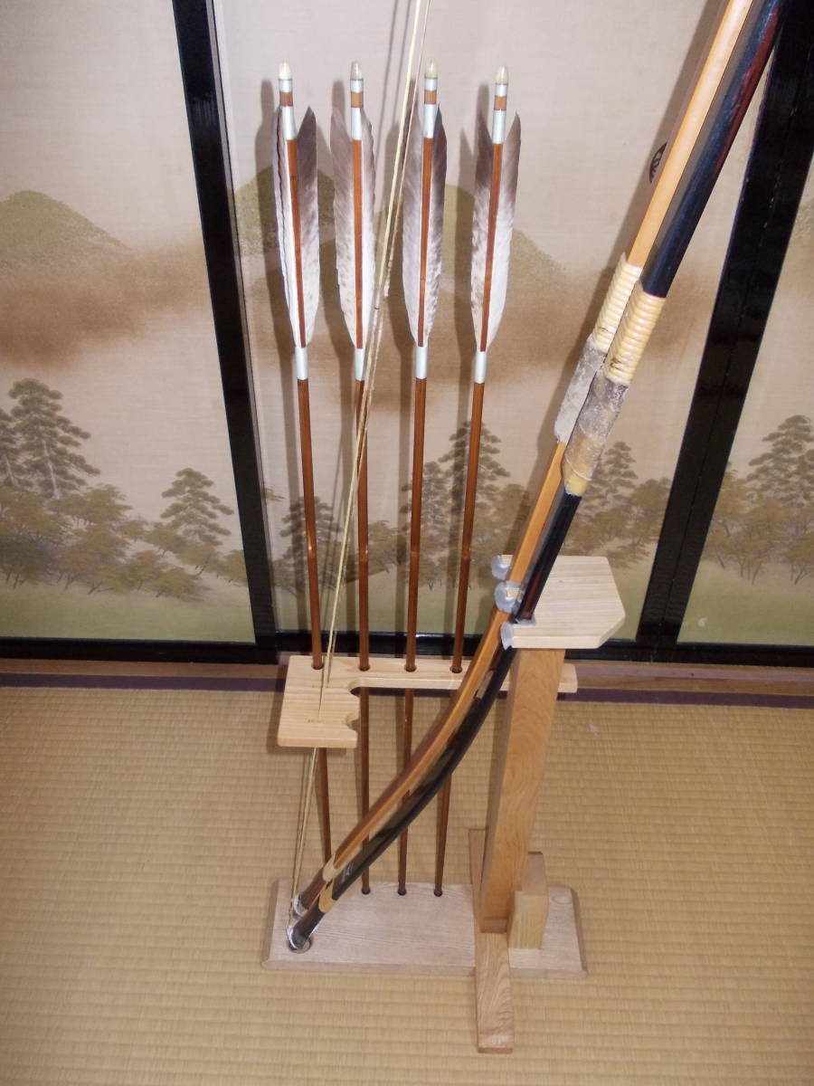 このような、弓2張り、と四つ矢を綺麗に設置する台です。