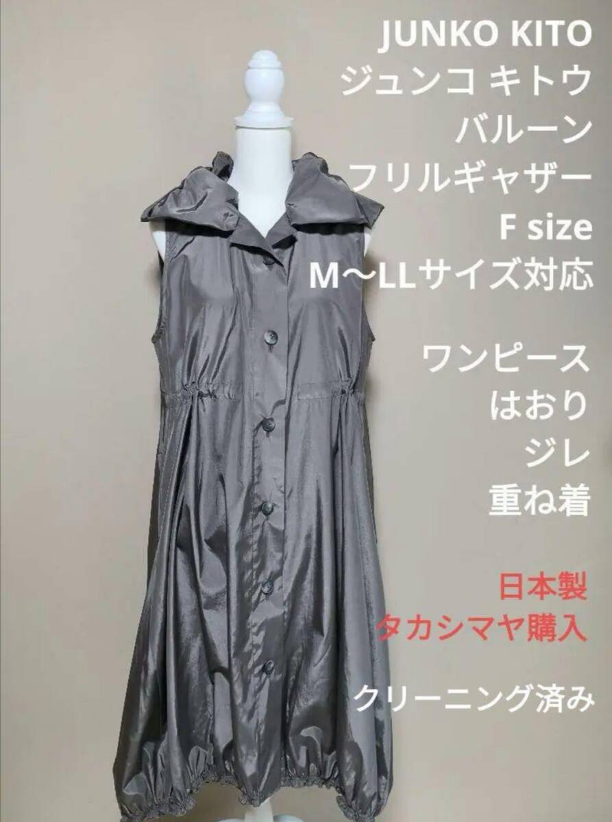 百貨店購入 JUNKO_KITO ジュンコキトウ バルーン フリル ギャザー コクーン ワンピース ジレ 羽織 F フリーサイズ M L XL 鬼頭純子 日本製