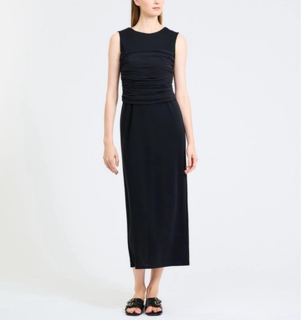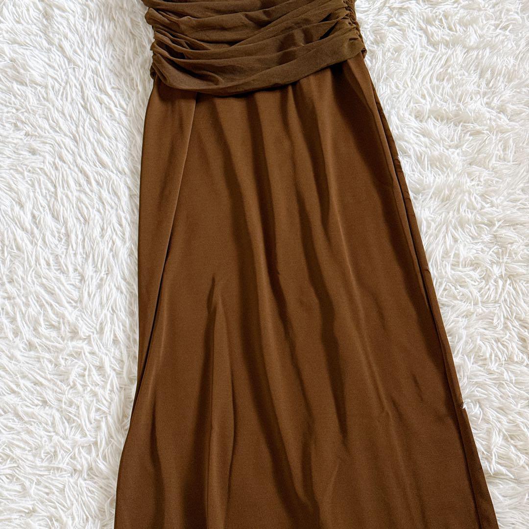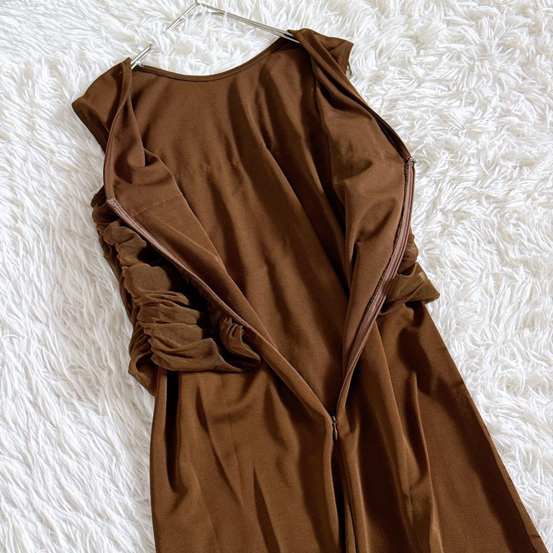 シアーコンビストレートワンピース ギャザーデザイン ノースリーブ ロング丈 38 ブラウン 2024年モデル 24SS
