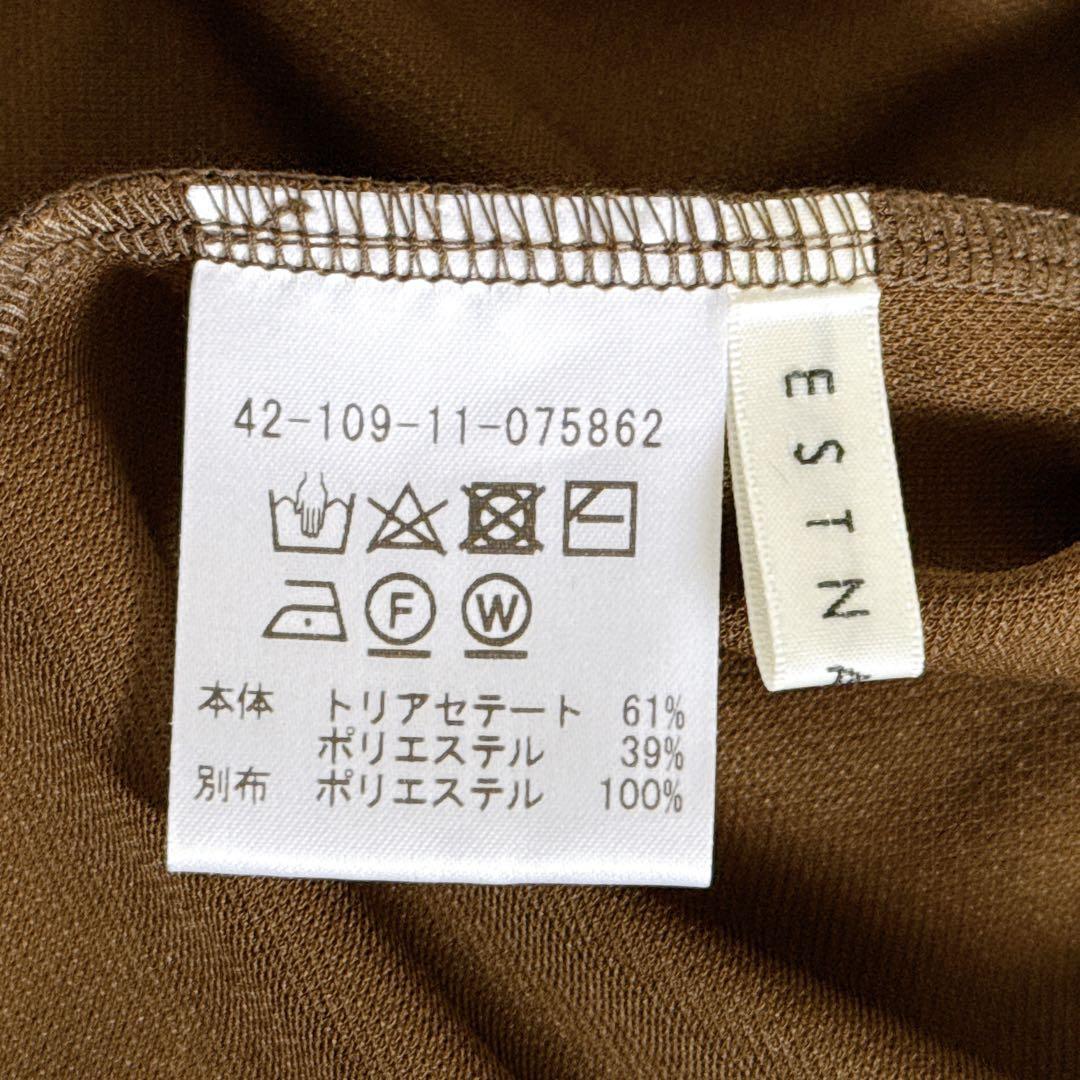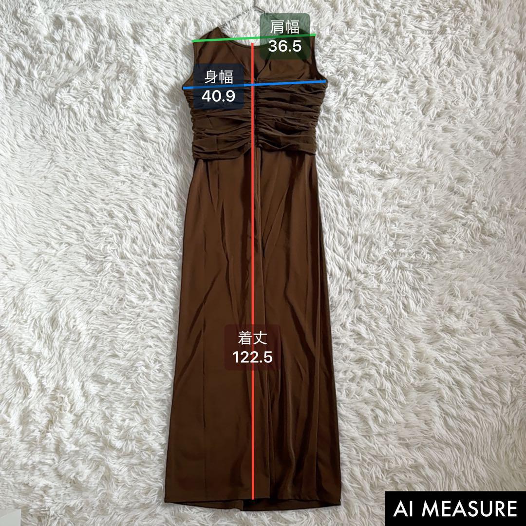 エストネーション ワンピース ロングワンピ ギャザー ビスチェ風 ストレートワンピ カーキブラウン ノースリーブ 結婚式 二次会 きれいめ 大人女子 体型カバー