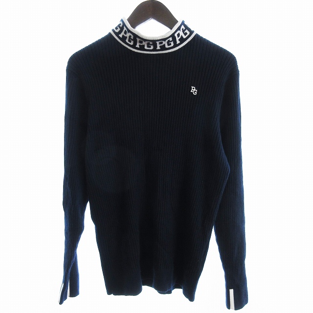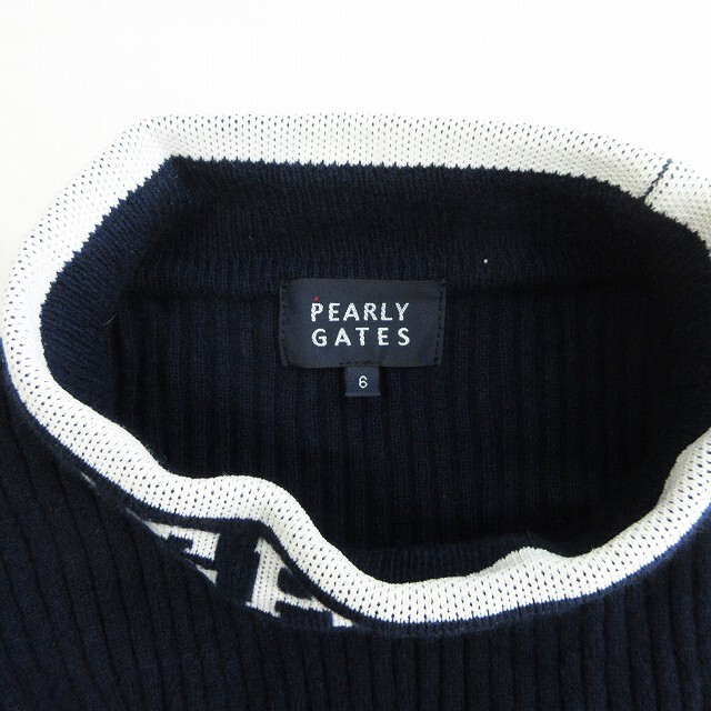 パーリーゲイツ PEARLY GATES ハイネックニットプルオーバー セーター 長袖 カシミヤ混 053-3274101 ロゴ 紺 ネイビー 6 メンズ