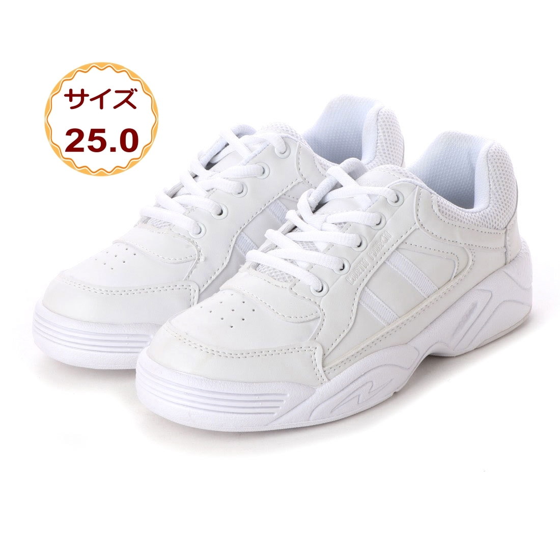 レースアップ スニーカー コートシューズ スクールシューズ 靴 ローカット 軽量 4E 幅広 通学 学生 白 ホワイト 18552-wht-250 ( 25.0cm )