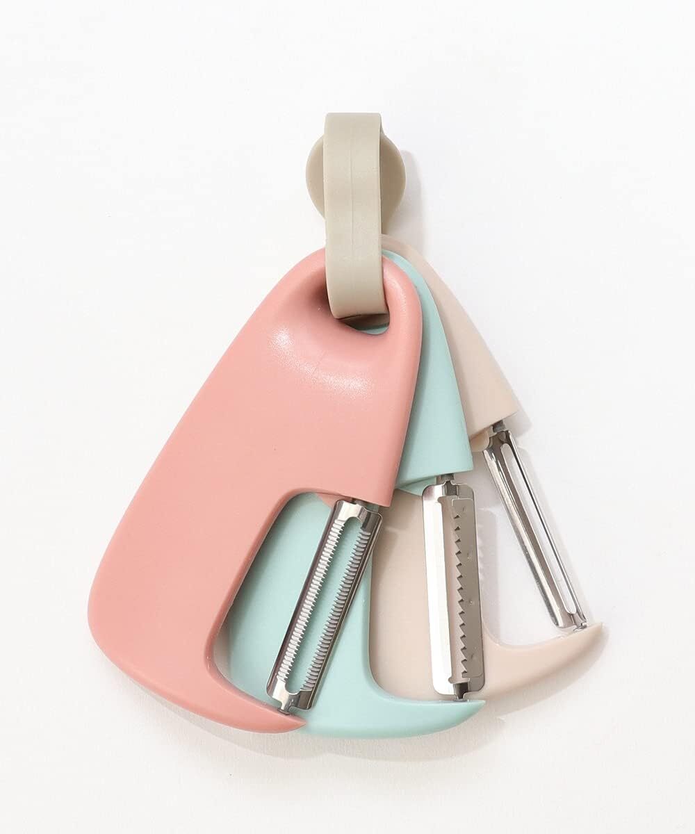 まとめて吊るして保管できるバンド付きのピーラーセットです。
