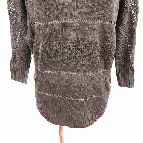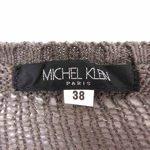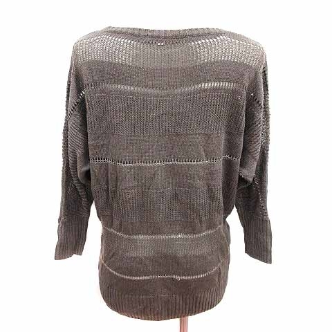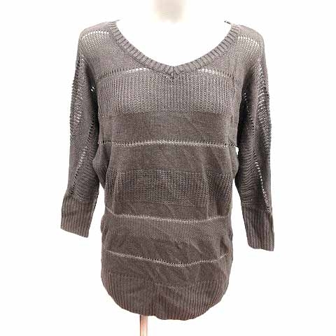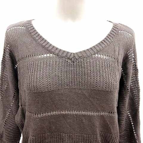 ミッシェルクラン MICHEL KLEIN ニット カットソー Vネック 透かし編み ドルマンスリーブ 長袖 麻 リネン 38 M 茶 /YK レディース
