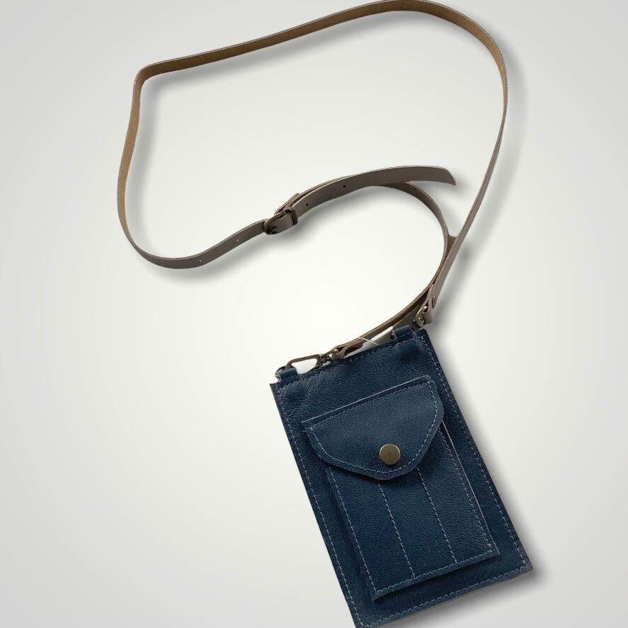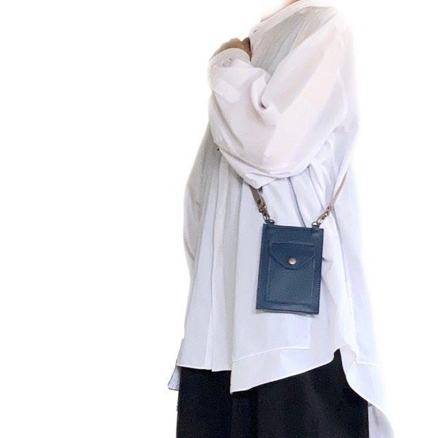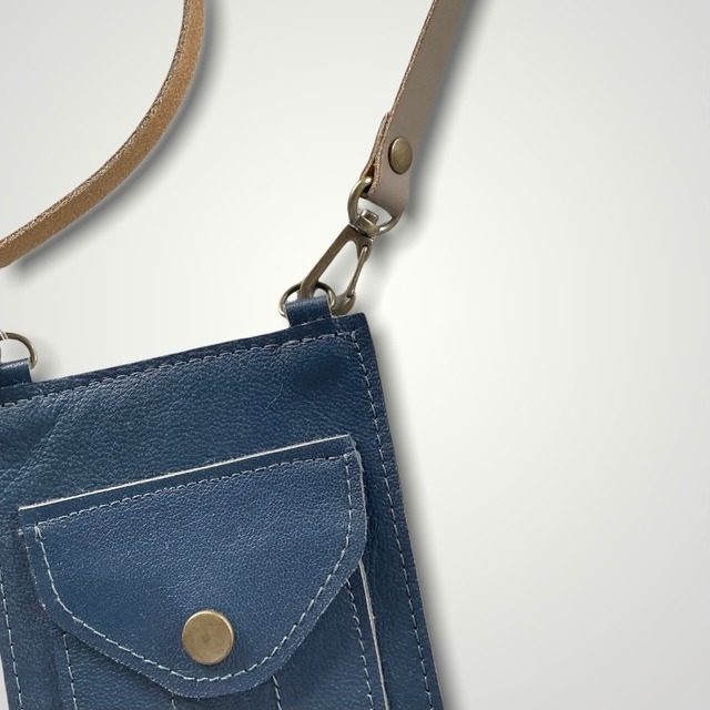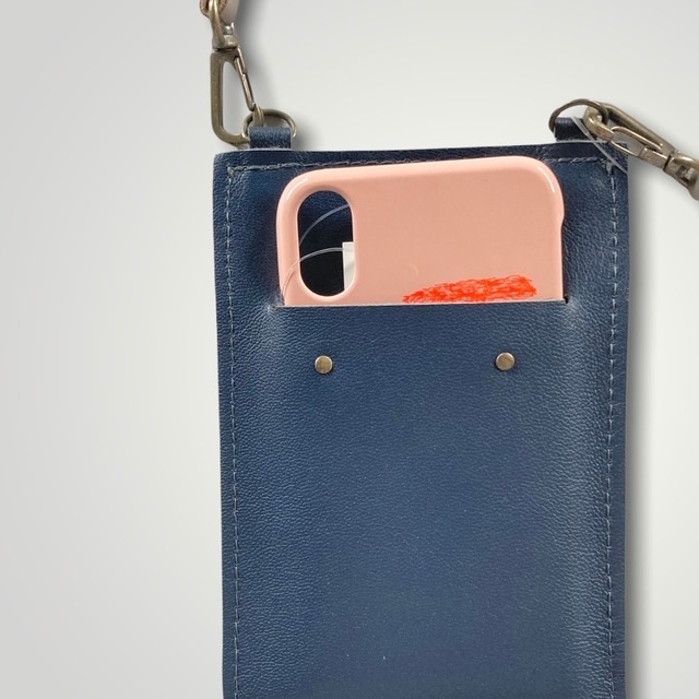 ハンドメイド スマホショルダー/ネイビーレザー/紺 革/1点もの